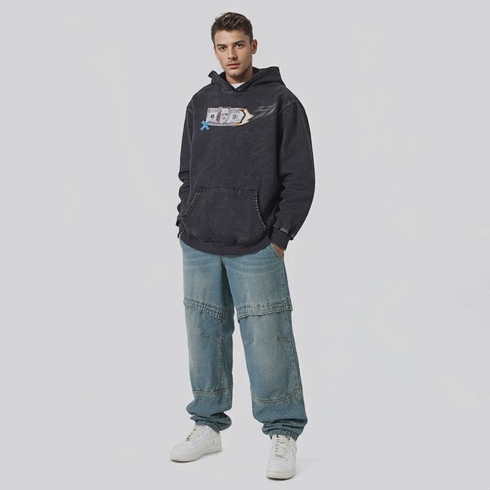 High street funny print heavy hoodie retro hip hop street distressed hoodie men