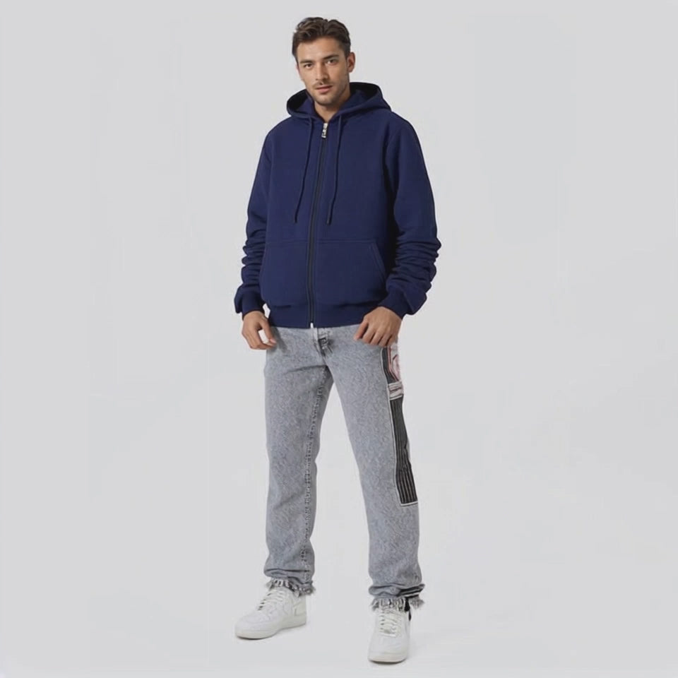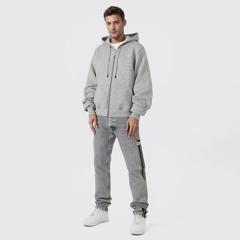 420g plus-size zipper hoodie men's street trend autumn winter plus fleece thickened cardigan coat