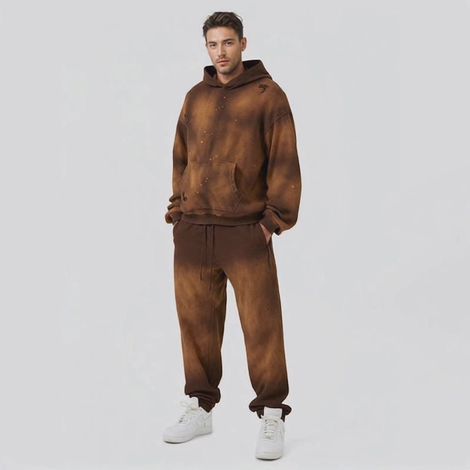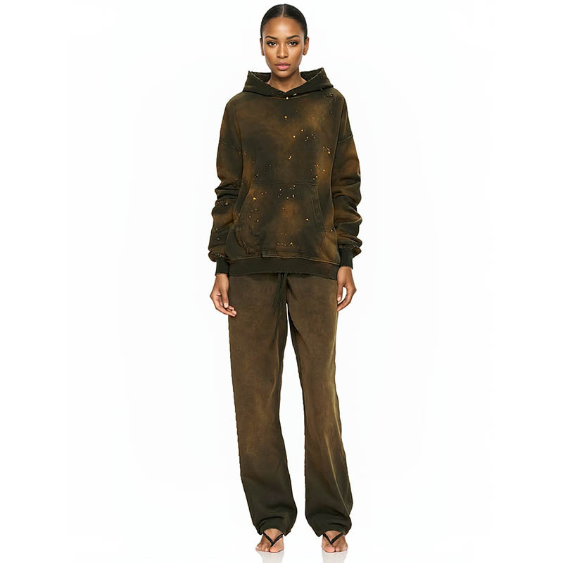 Autumn and winter 450g terry distressed men's and women's street suits retro loose washed hooded sweatshirts
