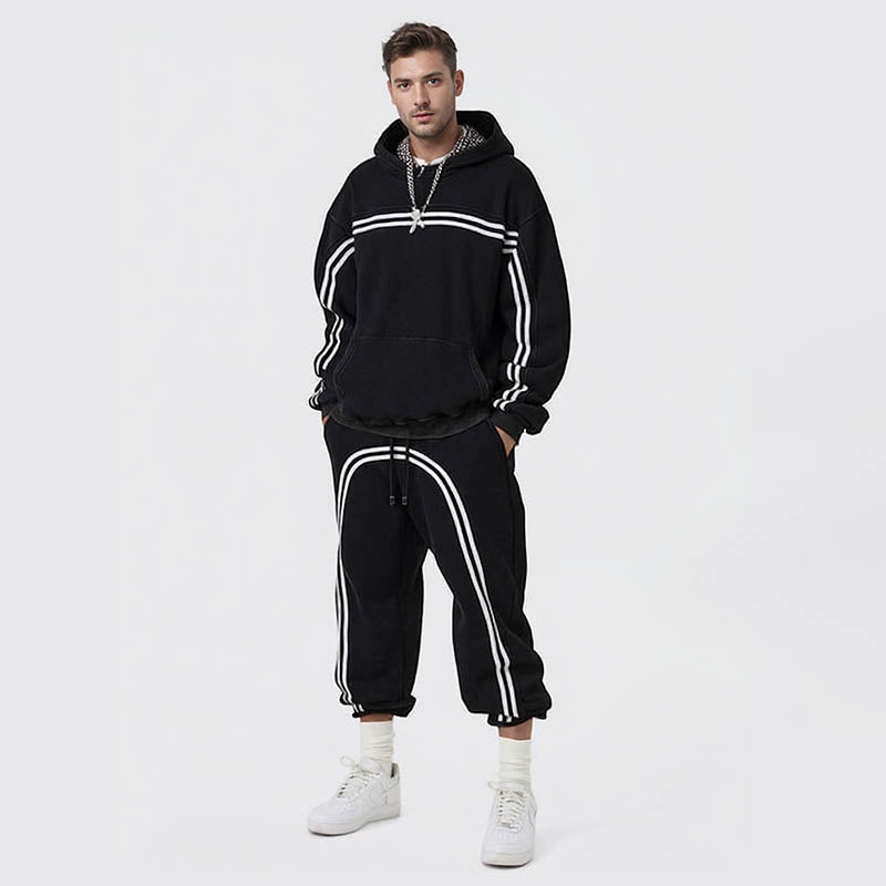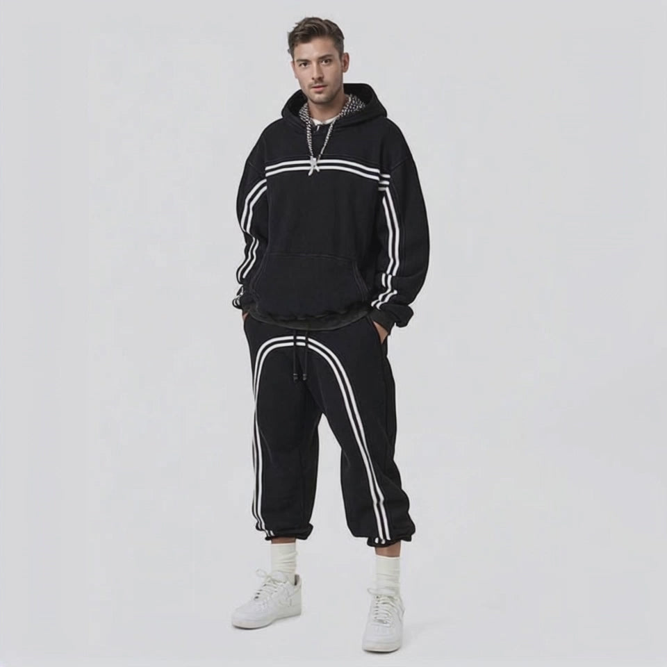 Autumn and winter European and American high street retro washed hooded sweatshirt plus velvet sports men's sweatshirt