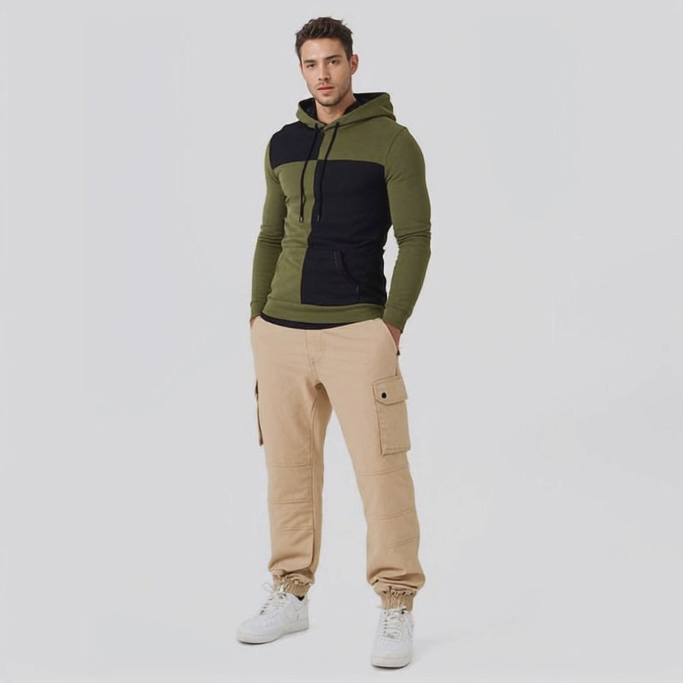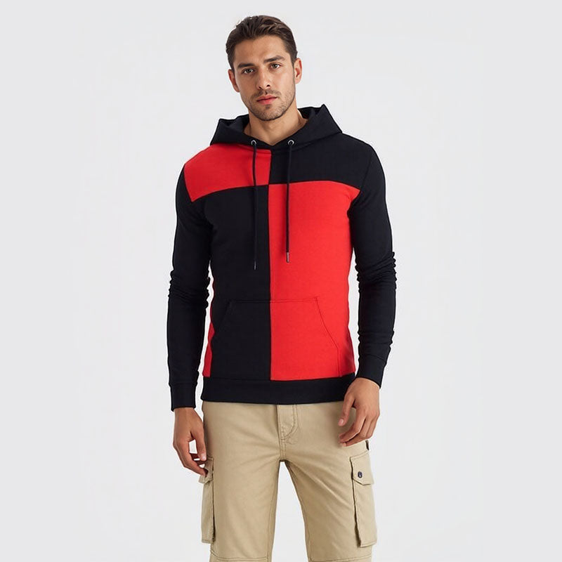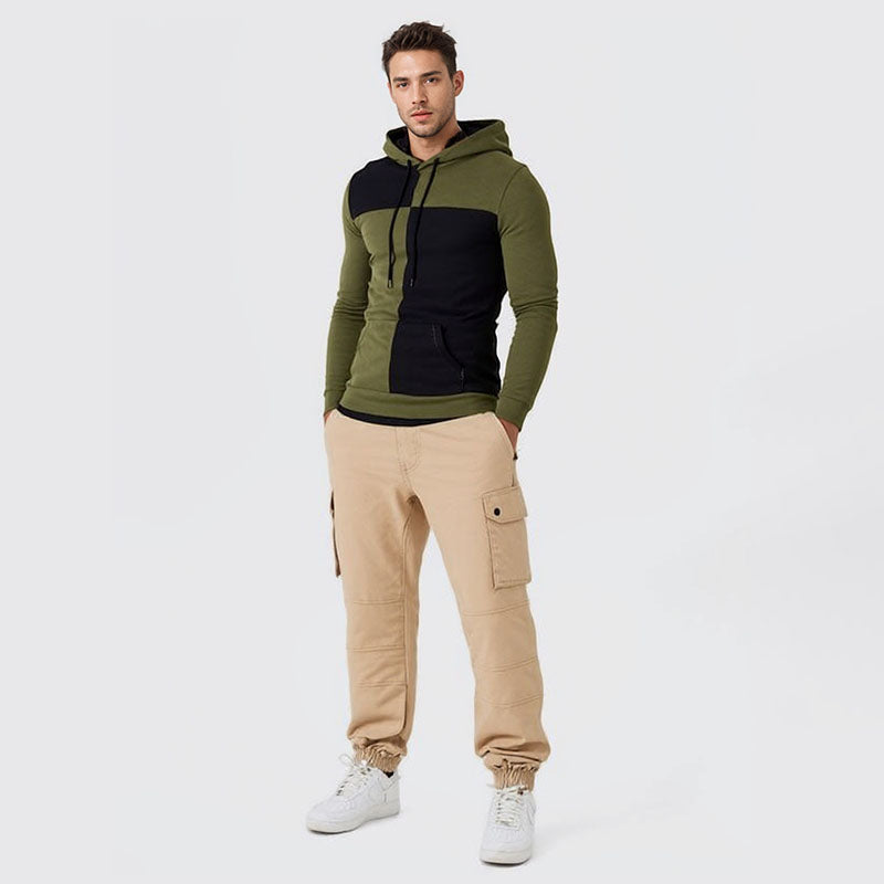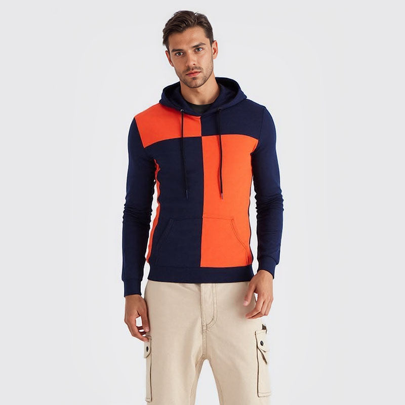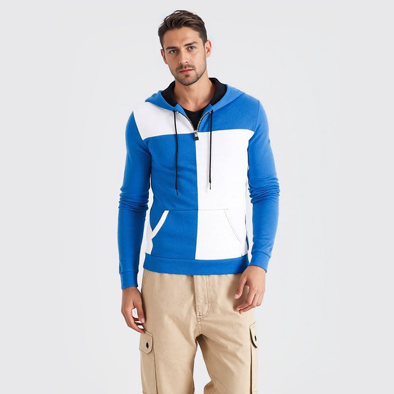 Autumn and winter men's casual hooded sweatshirt jacket men's color block sweatshirt men's clothing