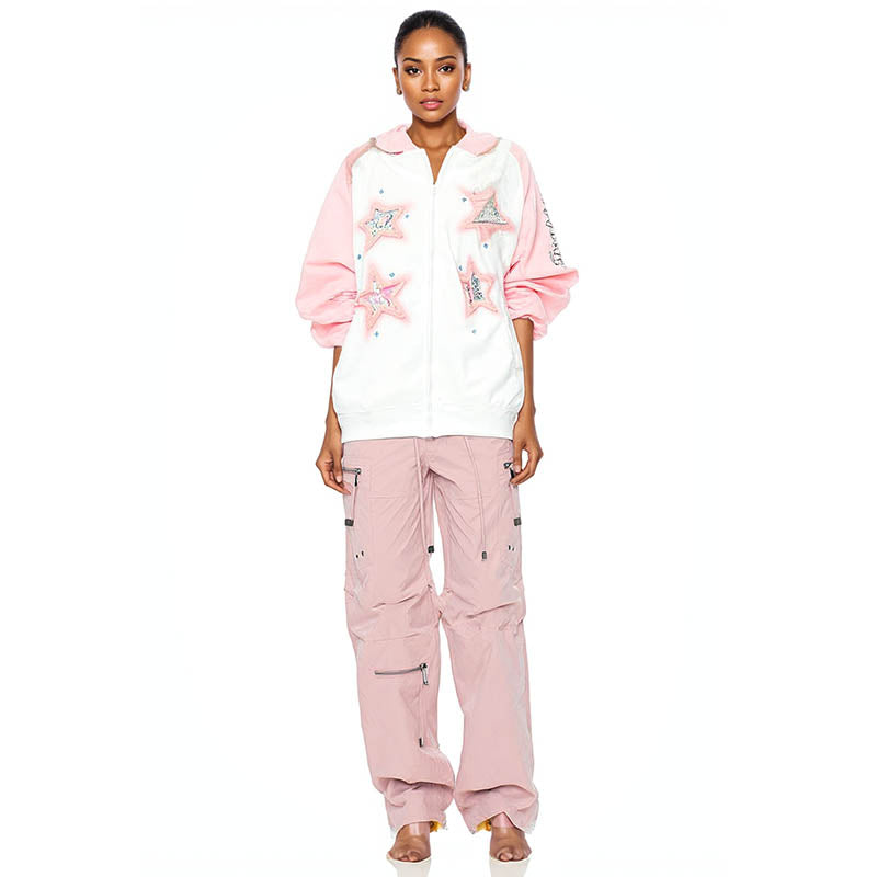 Autumn and winter sweatshirt jacket dopamine star patch embroidered sweatshirt men and women zipper hooded sweatshirt