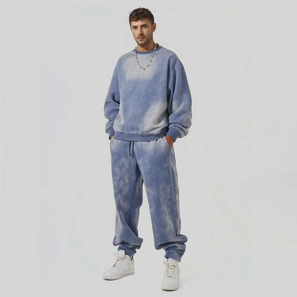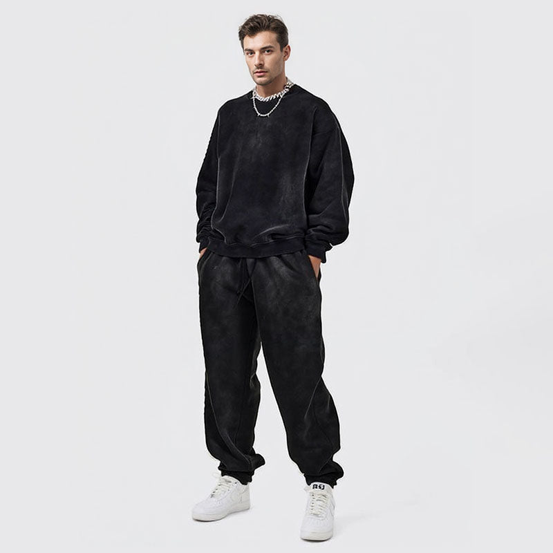 Autumn national trend washed heavyweight round neck sweatshirt men's velvet thickened couple sweatshirt