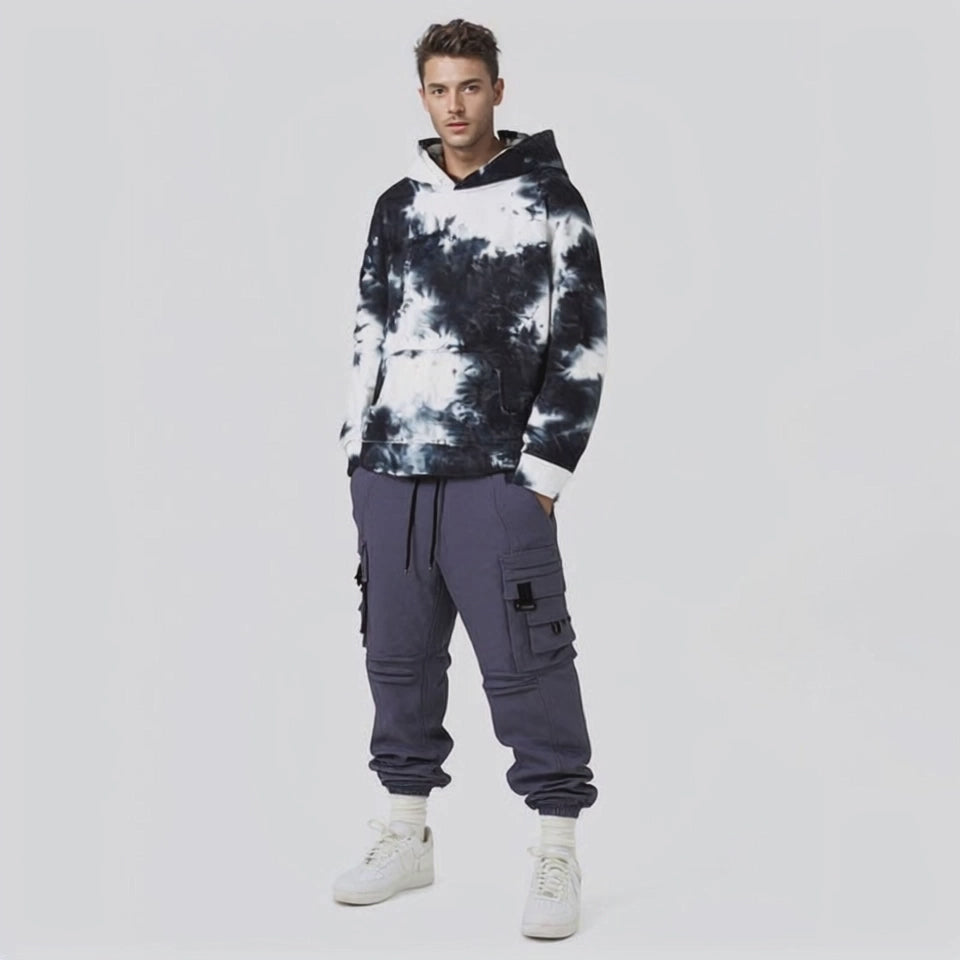 Autumn street men's sweatshirt cotton pullover long-sleeved hooded collar tie-dye sweatsh