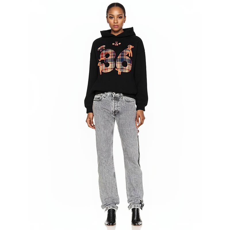 Black hooded sweatshirt spring and autumn design plaid dachshund 36 digital print niche lazy early autumn men's clothing