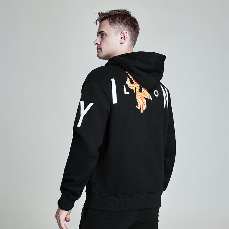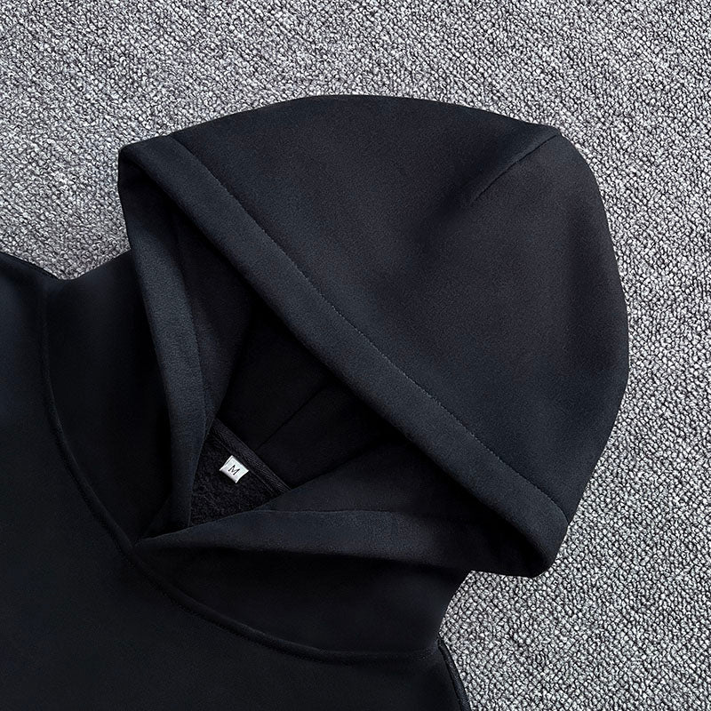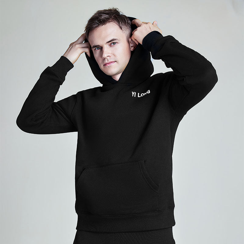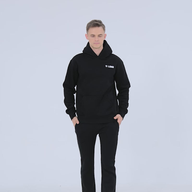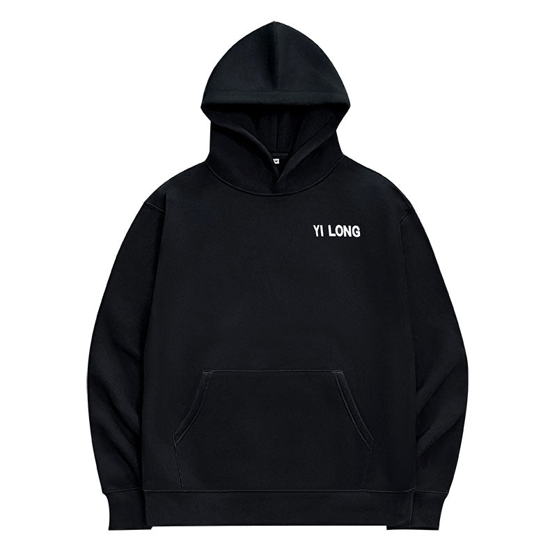 Black long-sleeved sweatshirt printed fleece hoodie for men