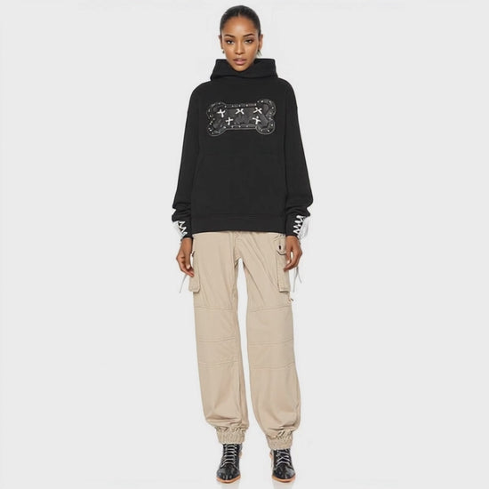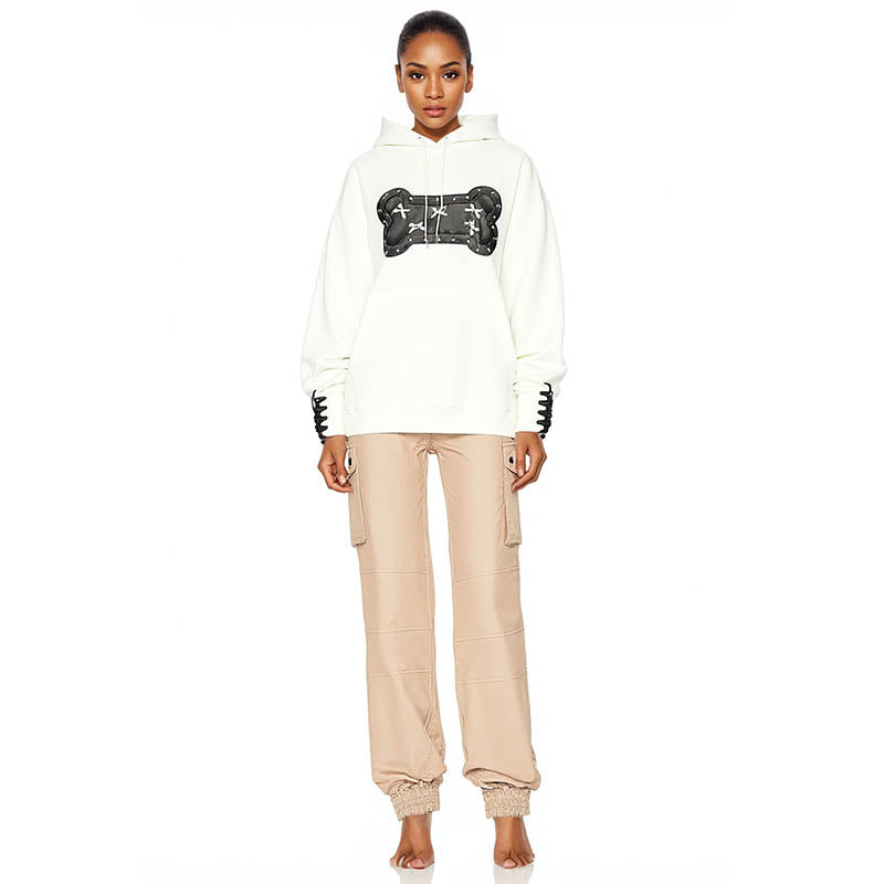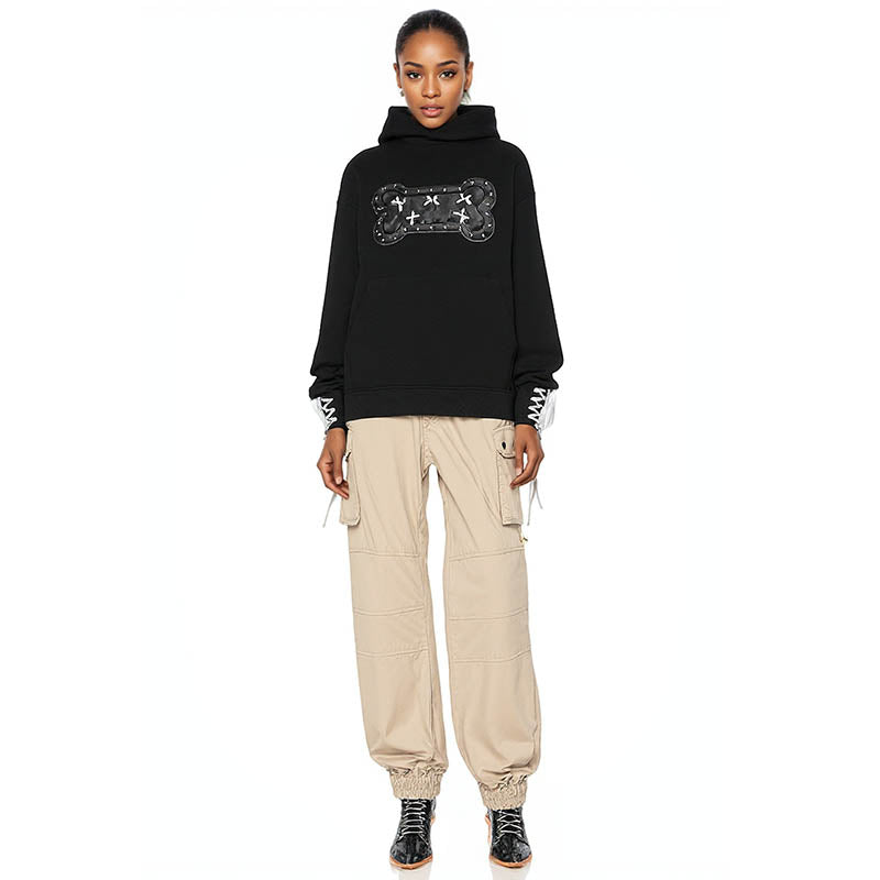 Bow bone patch PU embroidered hooded sweatshirt for men and women casual college style couple jackets for teenagers