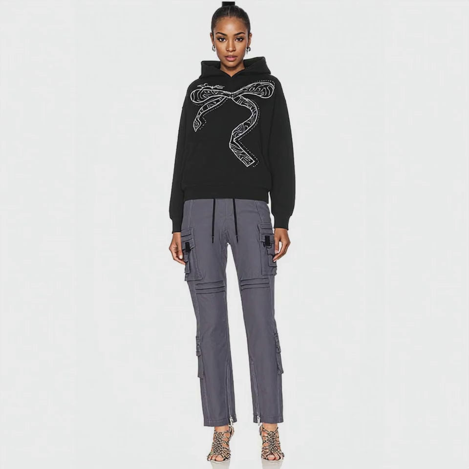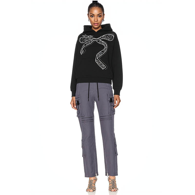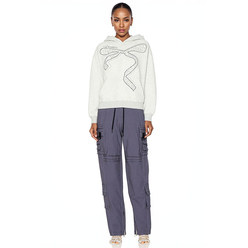 Bow Pattern Sweatshirt Spring and Autumn Loose College Style Sweet Pullover Women's Hooded Jacket