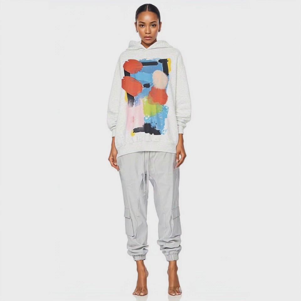 Creative art palette pullover hooded sweatshirt for men and women, casual street style loose jacket for couples