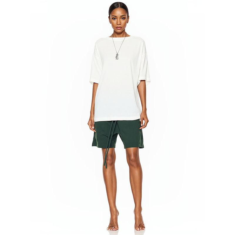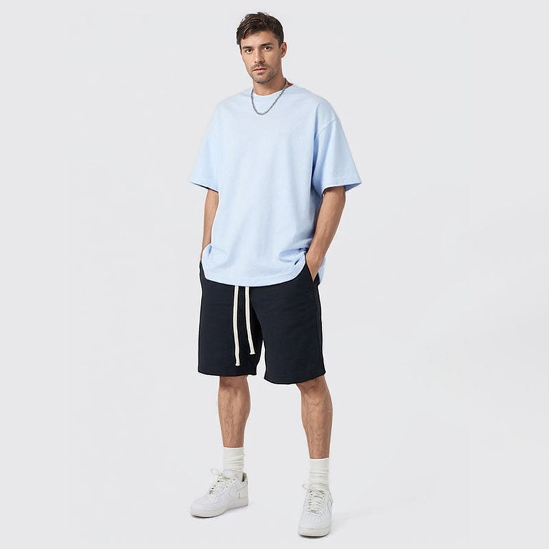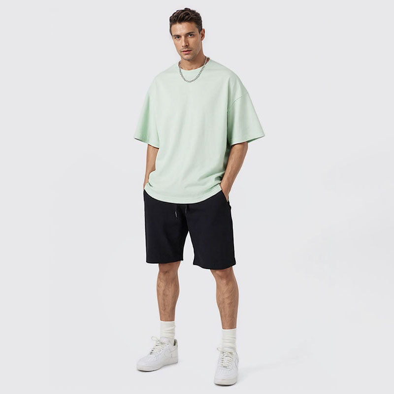 Double yarn pure cotton short-sleeved men's and women's loose casual off-shoulder T-shirt customization