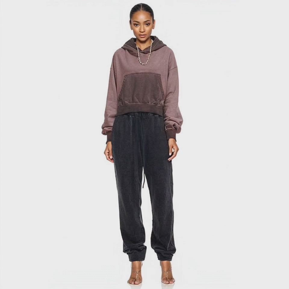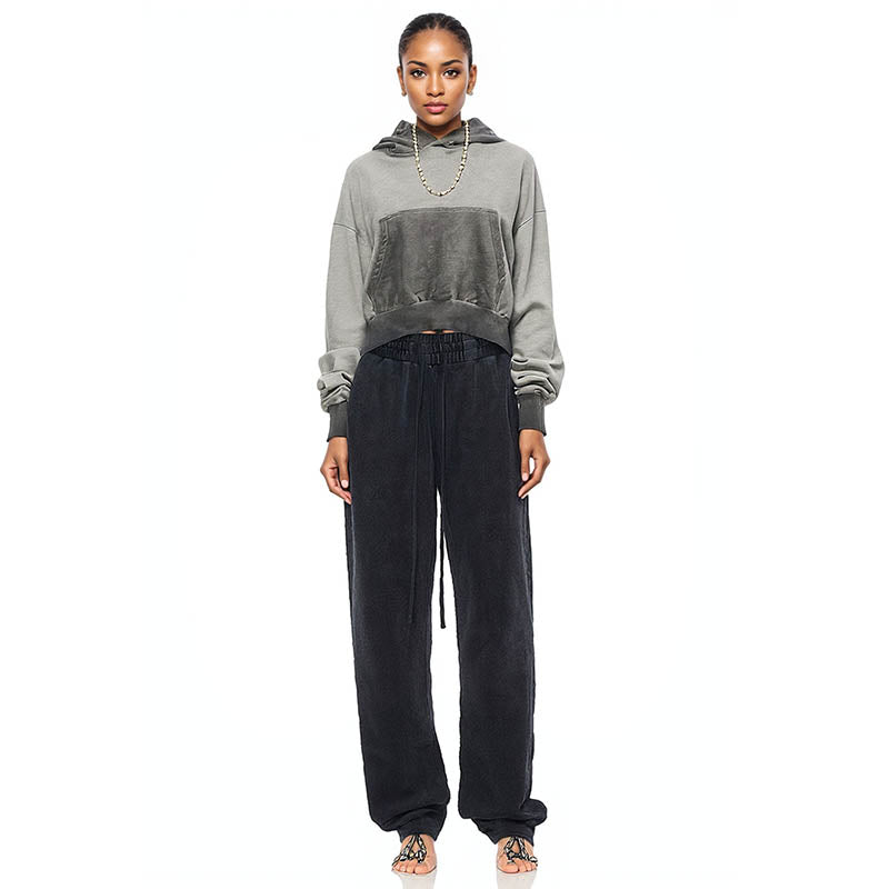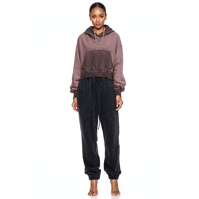 fashion short high waist slim fit reverse bottom stir fried hooded pocket casual dragon sleep top