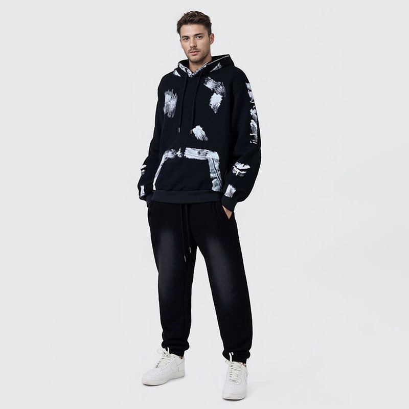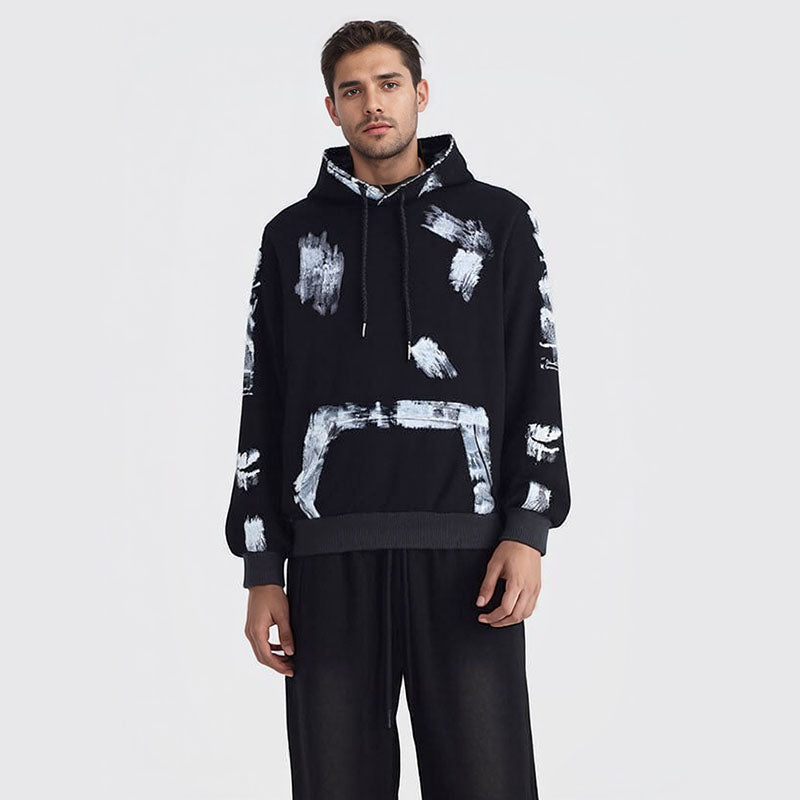 Graffiti pattern printed loose hooded sweatshirt for men and women