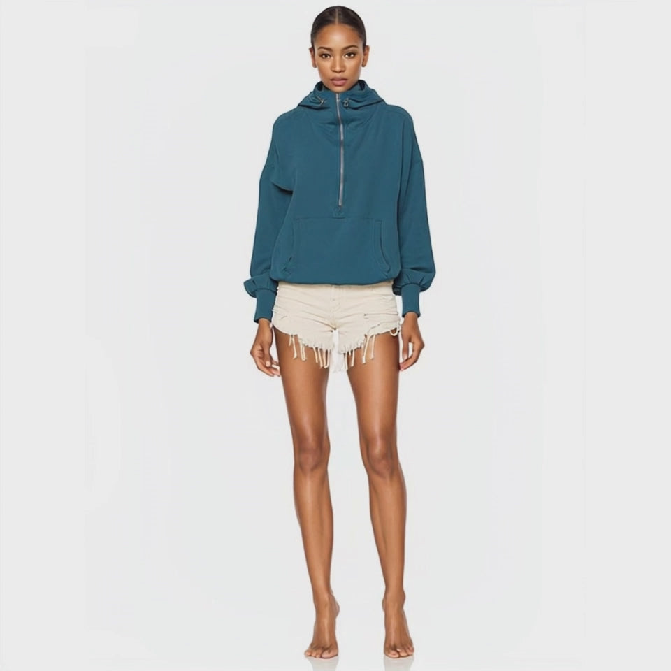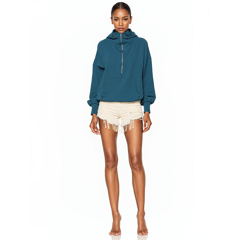 - 🆕Design: Zip up pullover sweatshirt with hoodie features a half zipper, slightly cropped fit, oversized fit, hood collar with drawstring, and a handy kangaroo pocket