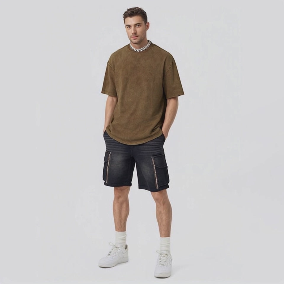 Heavy vintage washed short-sleeved men's T-shirt