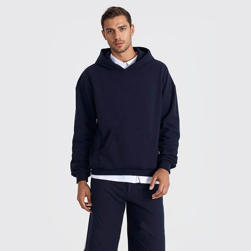 High quality solid color sweatshirt autumn and winter streetwear men's hoodie heavy wash sweatshirt