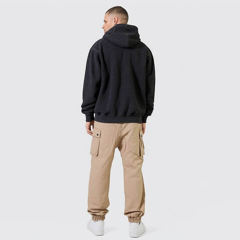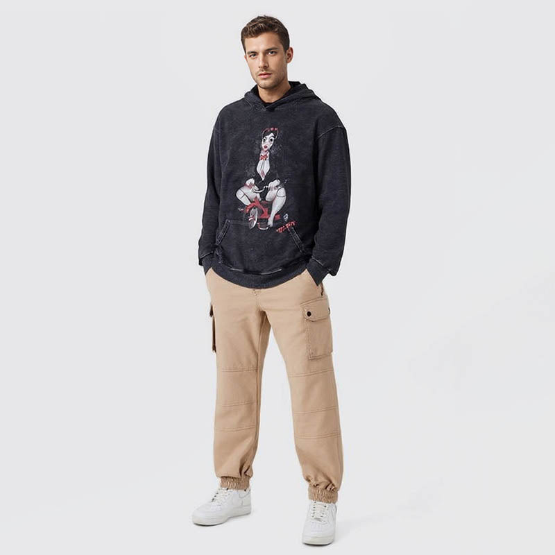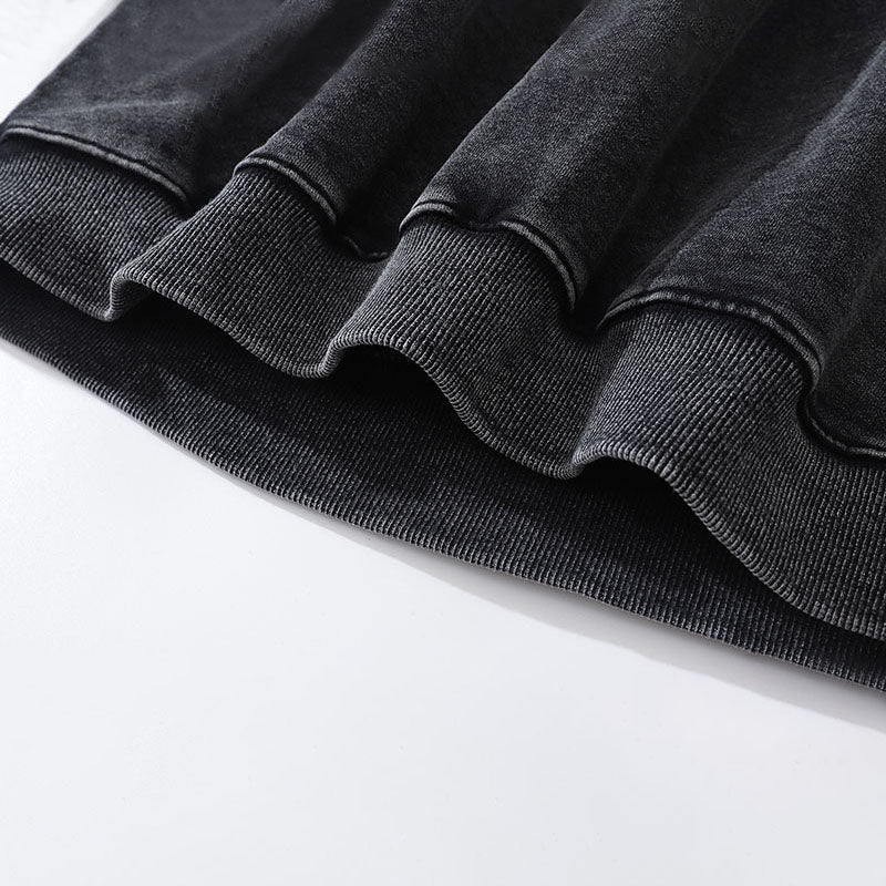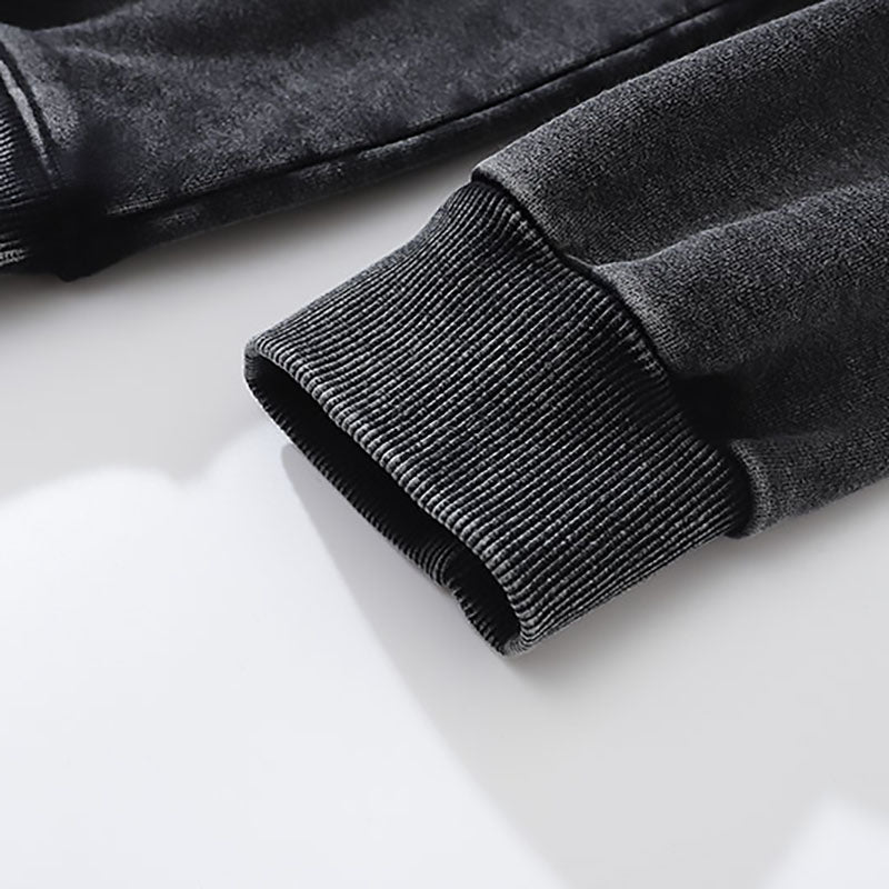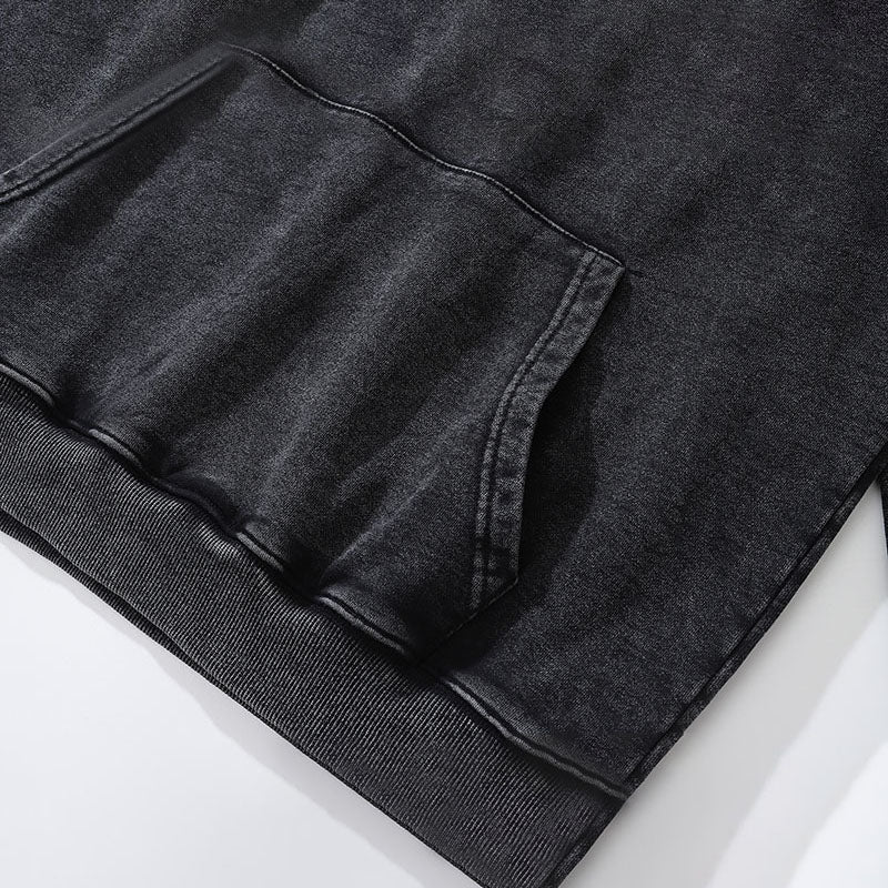 High street retro washed distressed pullover hoodie casual dark print loose hooded sweatshirt for men
