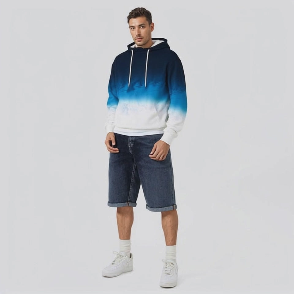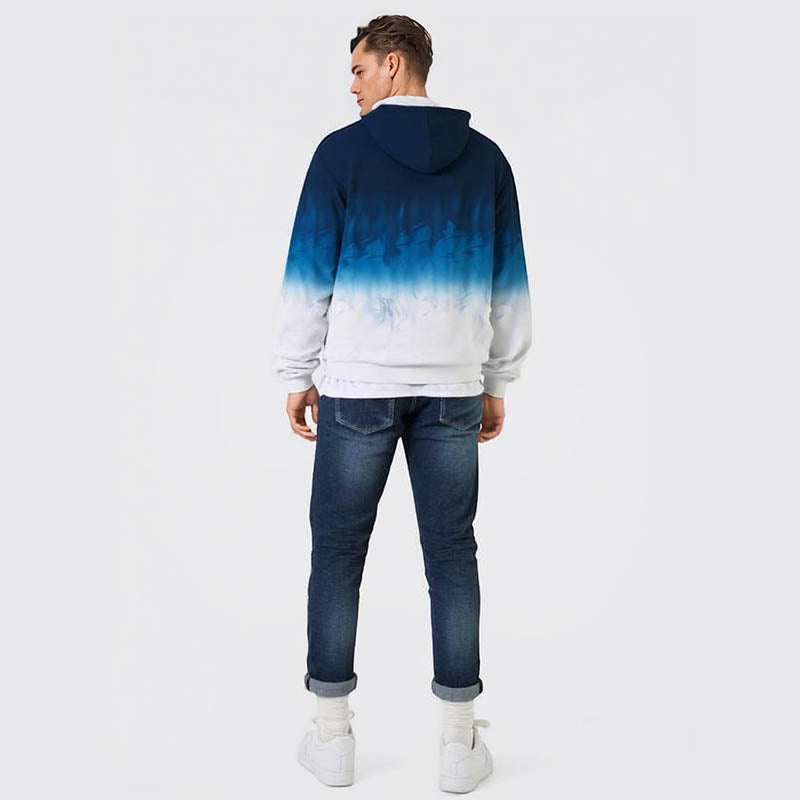 Long Men's Sweatshirt Gradient Digital Print Hooded Sweatshirt