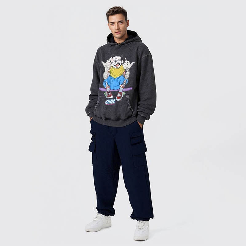 Men and Women Black Anime Sweatshirts Retro Clothing Pullovers Comic Hoodies Men's