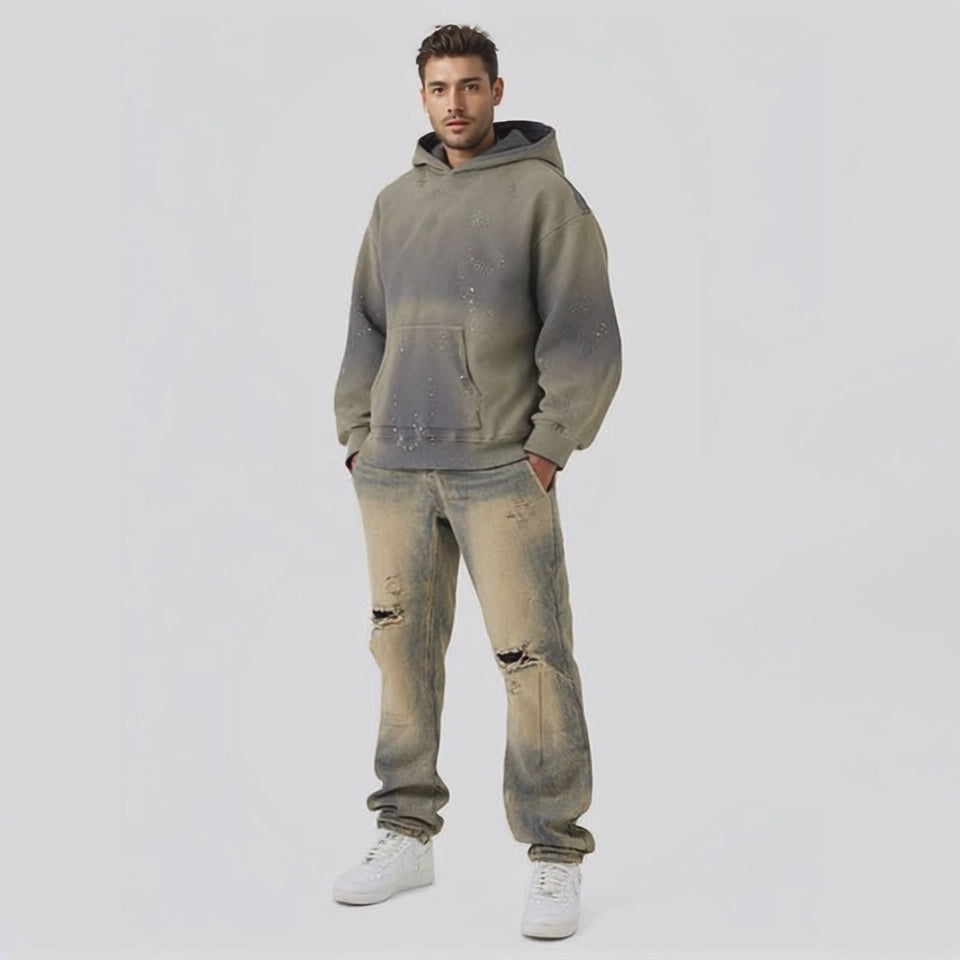 Men's 360G washed distressed plus velvet sweatshirt sprayed with monkey paint and a little worn hoodie men's sweatshirt