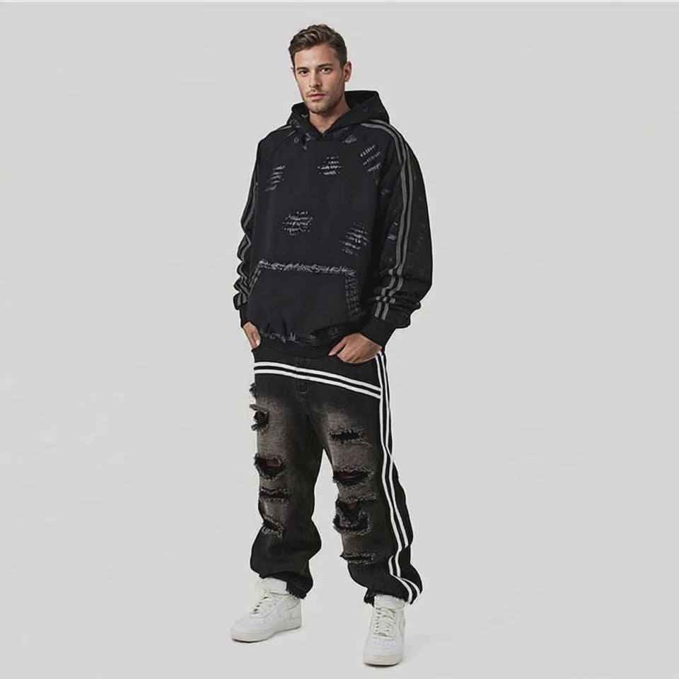 This men's sweatshirt perfectly combines style and functionality, with its high-quality material and unique painted and distressed design. Plus, its thicken feature ensures warmth and comfort during the colder autumn and winter seasons. Stay on-trend and cozy in this retro hooded sweatshirt.