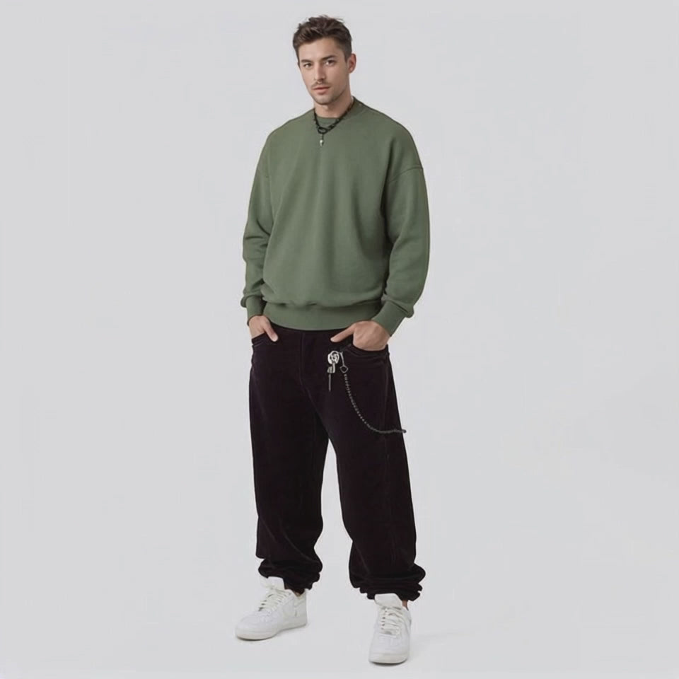Men's autumn and winter sweatshirt 350G plus velvet loose round neck sweatshirt men'