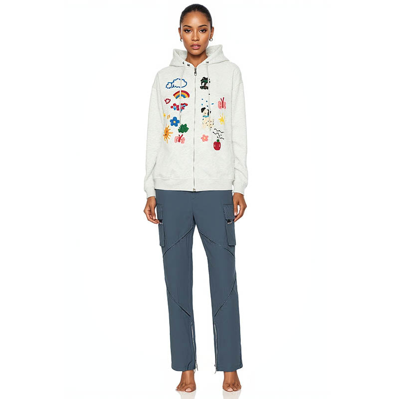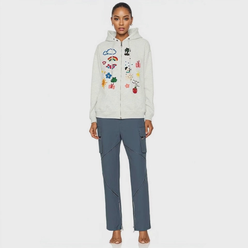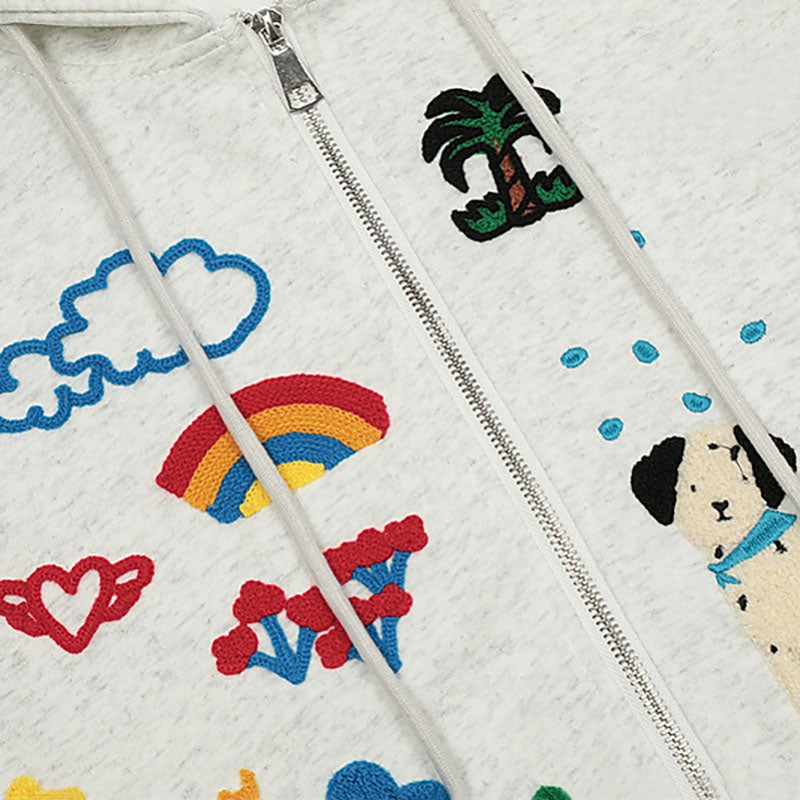 Men's autumn new cute style cartoon fun embroidered cardigan hoodie sweatshirt for men and women