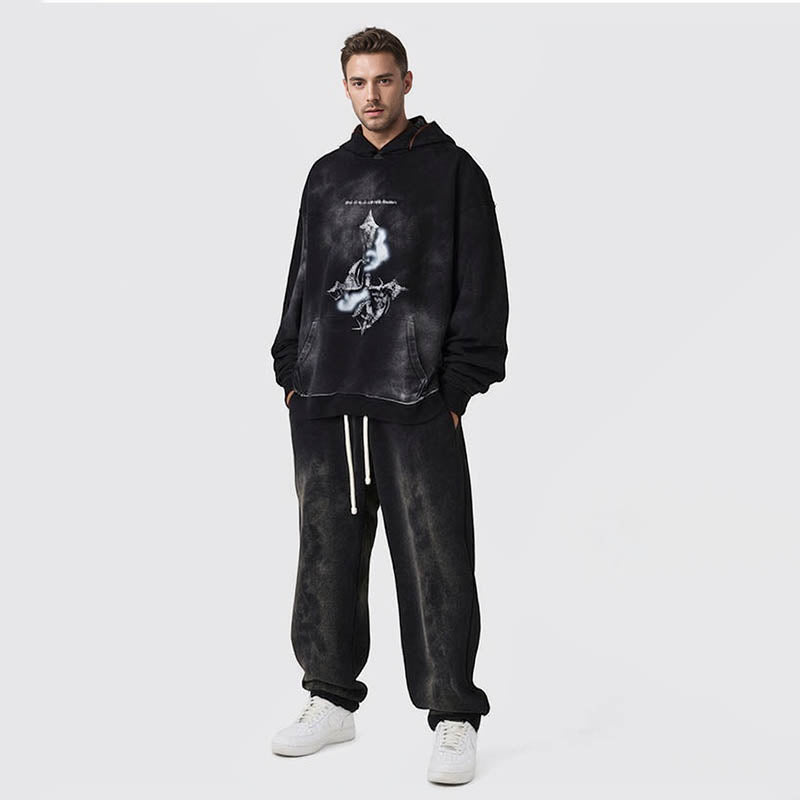 Men's Autumn Washed Heavy Metal Print Hooded Sweatshirt for Men
