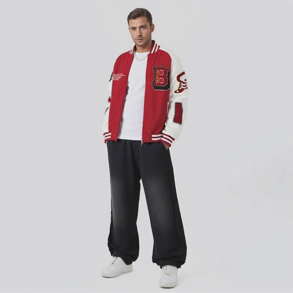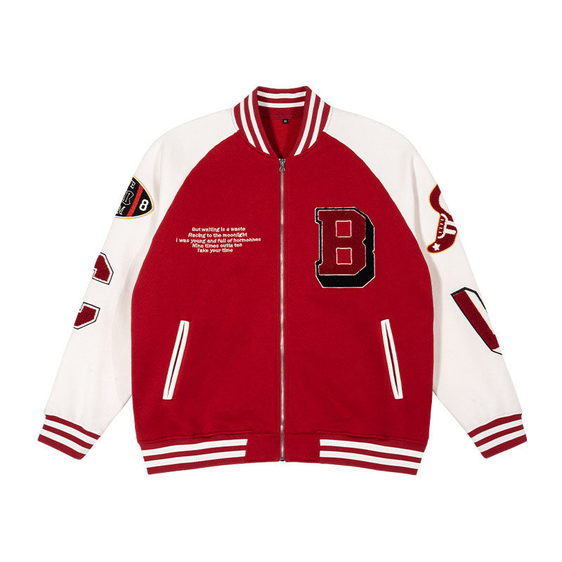 Men's new trendy brand baseball uniform men's jacket fashionable embroidered contrasting color stitching fleece jacket