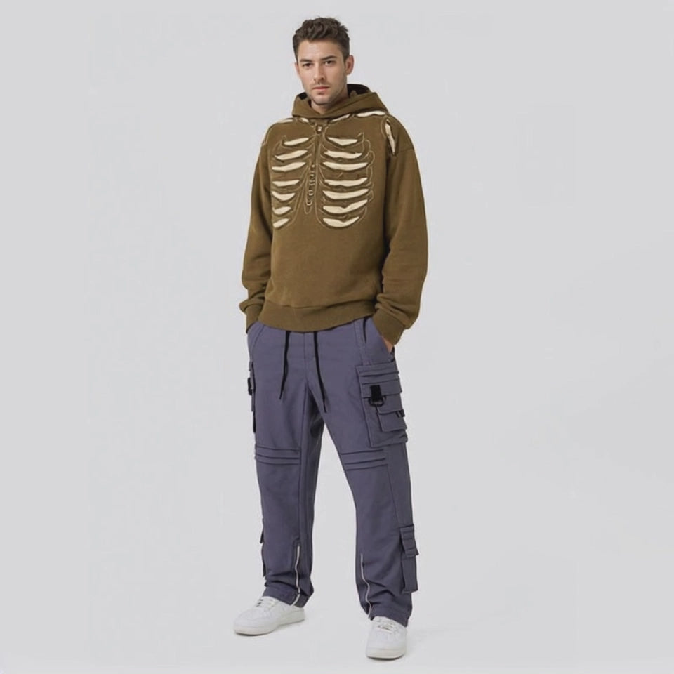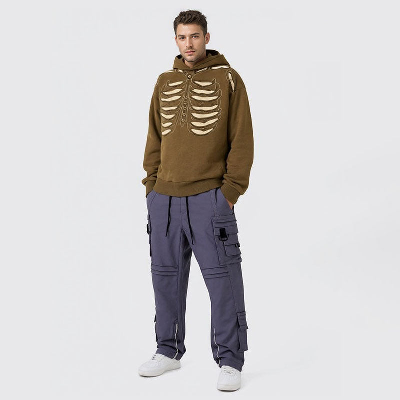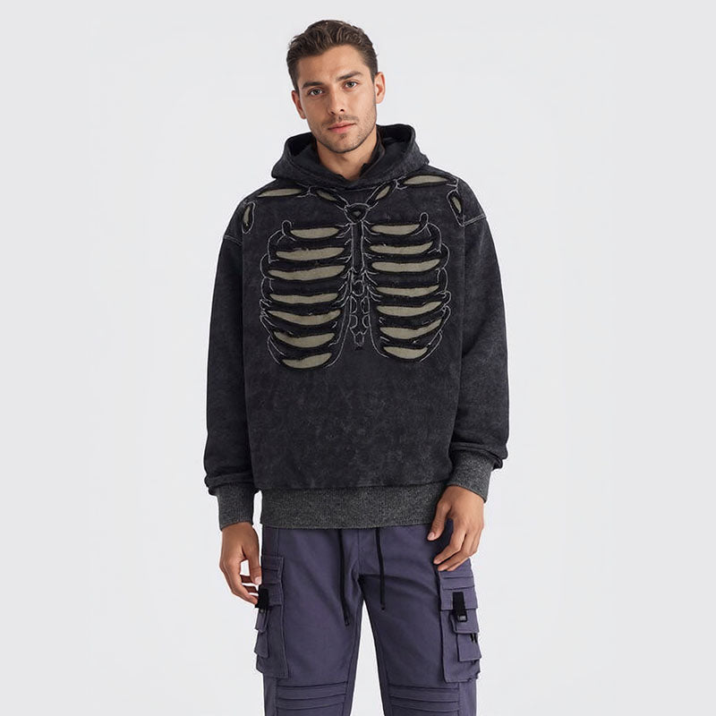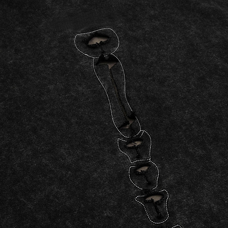 Men's Skull Hole Design Hip-Hop Hooded Sweatshirt Men's Acid Wash Couple Jacket Hooded Men's Clothing