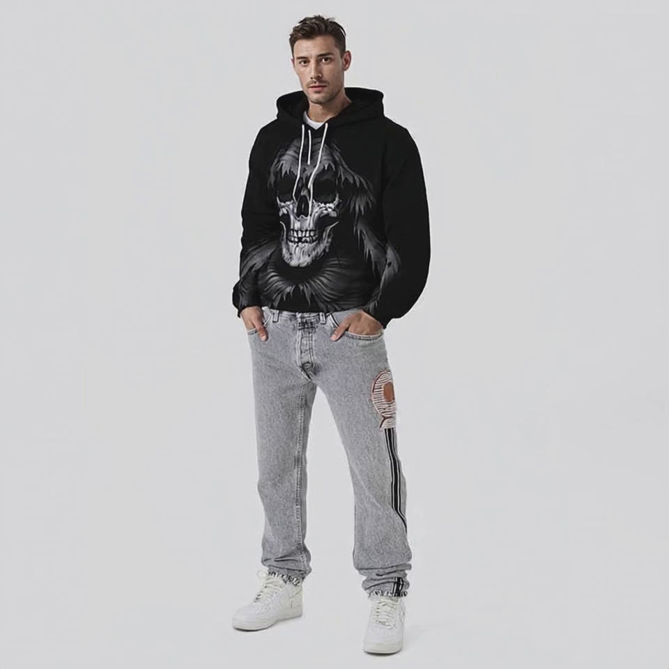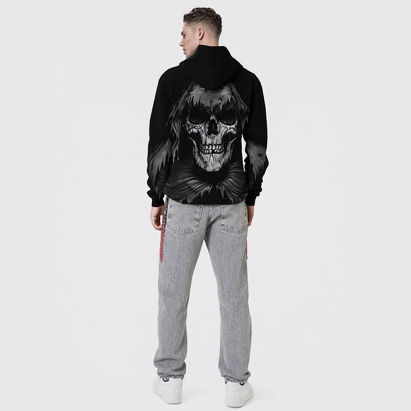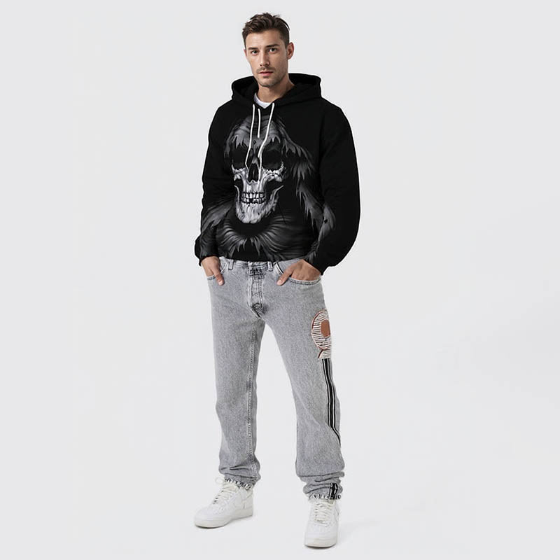 Men's Skull Printed Hoodie Novelty Graphic Sweatshirt Pullover Hoodie