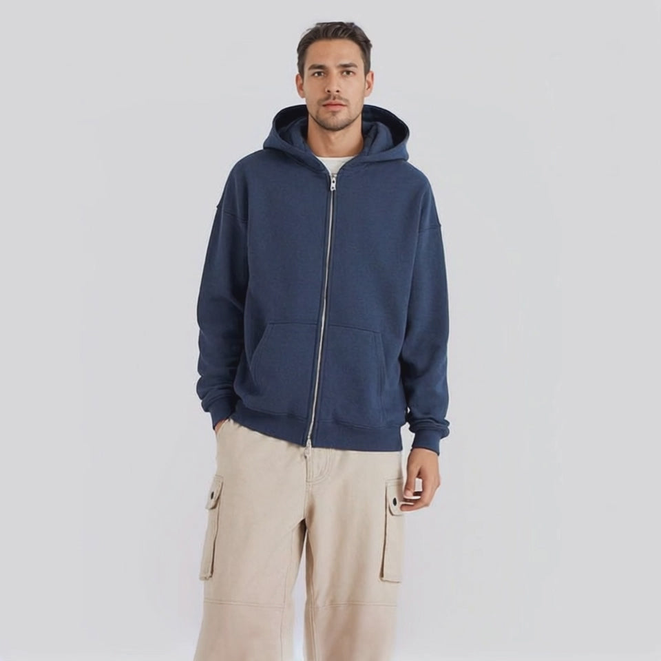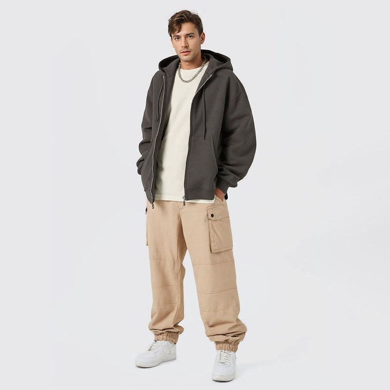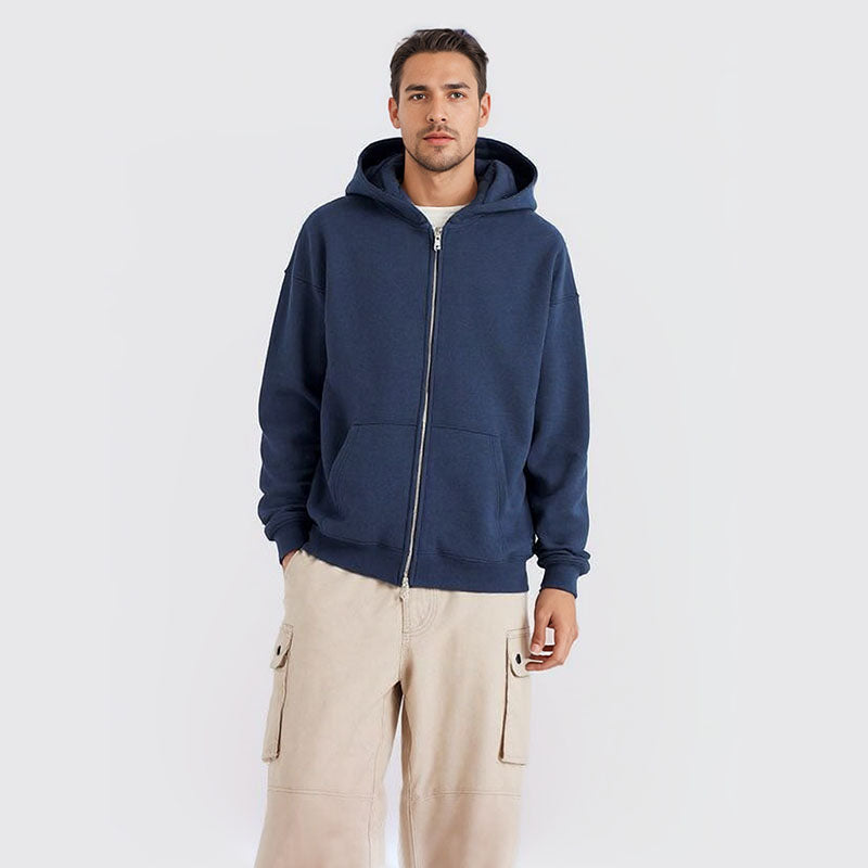 New autumn and winter velvet 350G double-ended zipper cardigan loose men's hooded sweatshirt