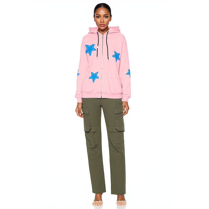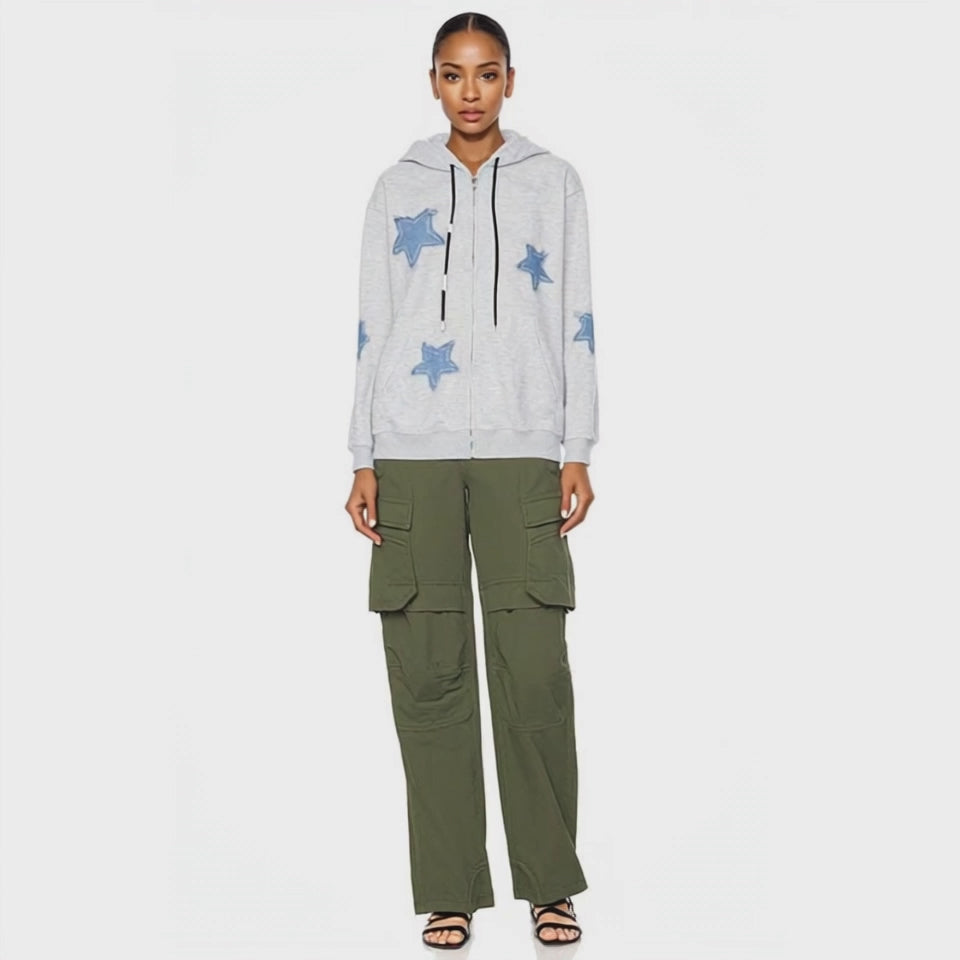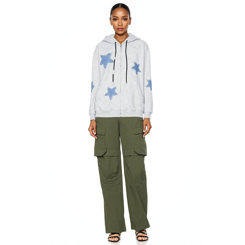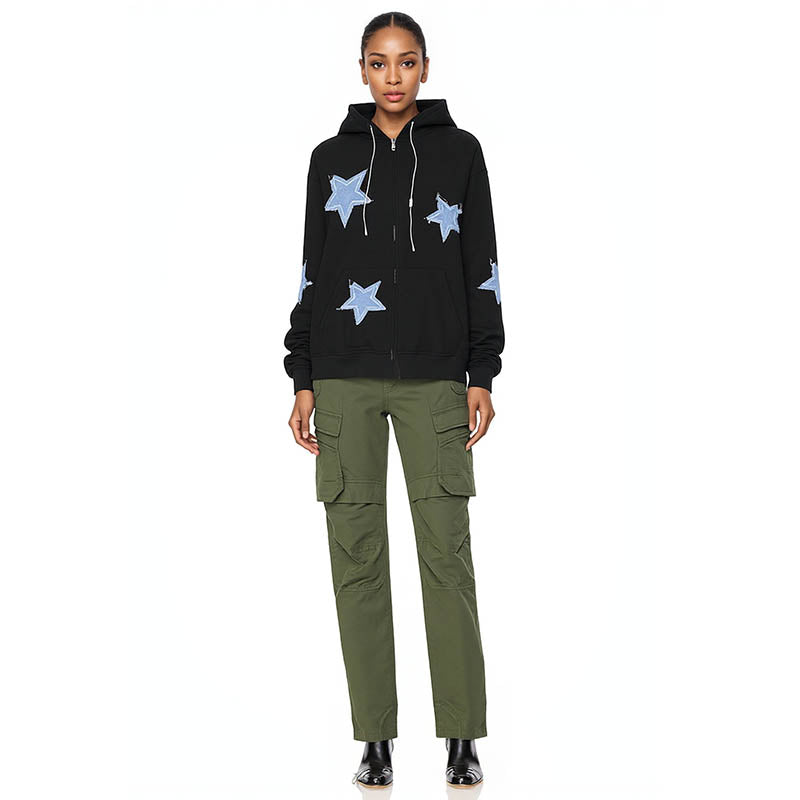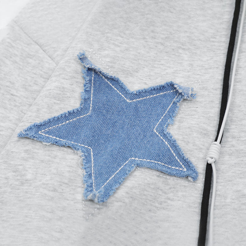 Oversized Crewneck Sweatshirt Women Autumn Trendy Vintage Star Patch Zip Up Hooded Jacket Loose Casual Couple Hoodie