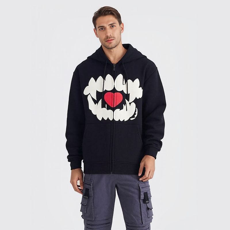 Patch Love Hooded Sweatshirt Internet Celebrity Couple Hoodies College Style Loose Jacket Men