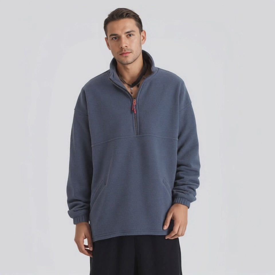 Polar fleece men's sweatshirt autumn and winter new pullover casual bottoming shirt half high zipper stand collar jacket