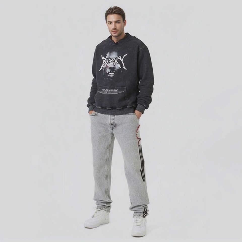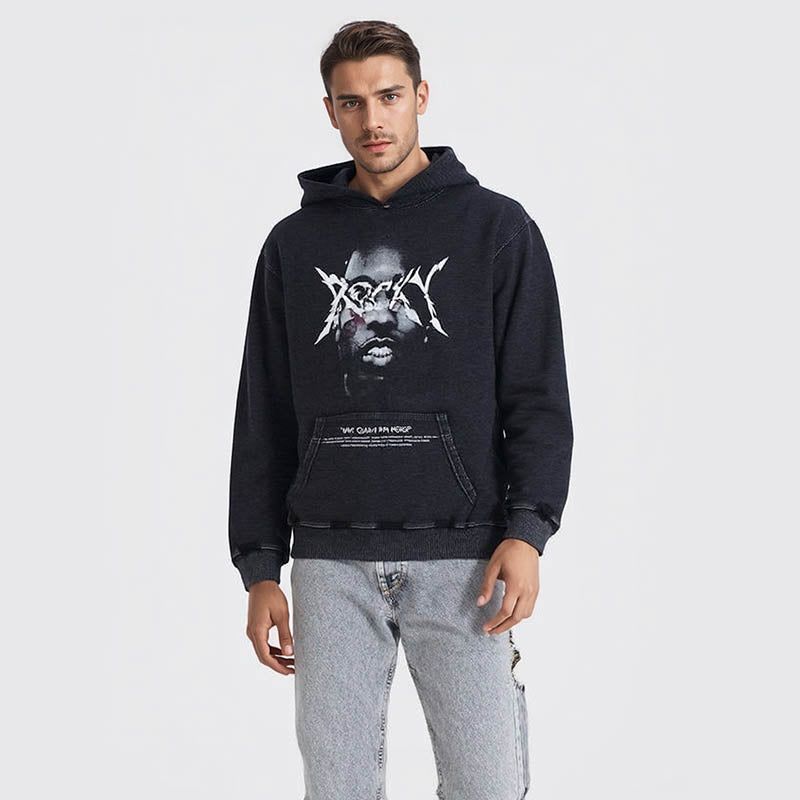 Pure cotton high street alphabet print wash vintage hoodie men's and women's loose pullover jacket sweatshirt