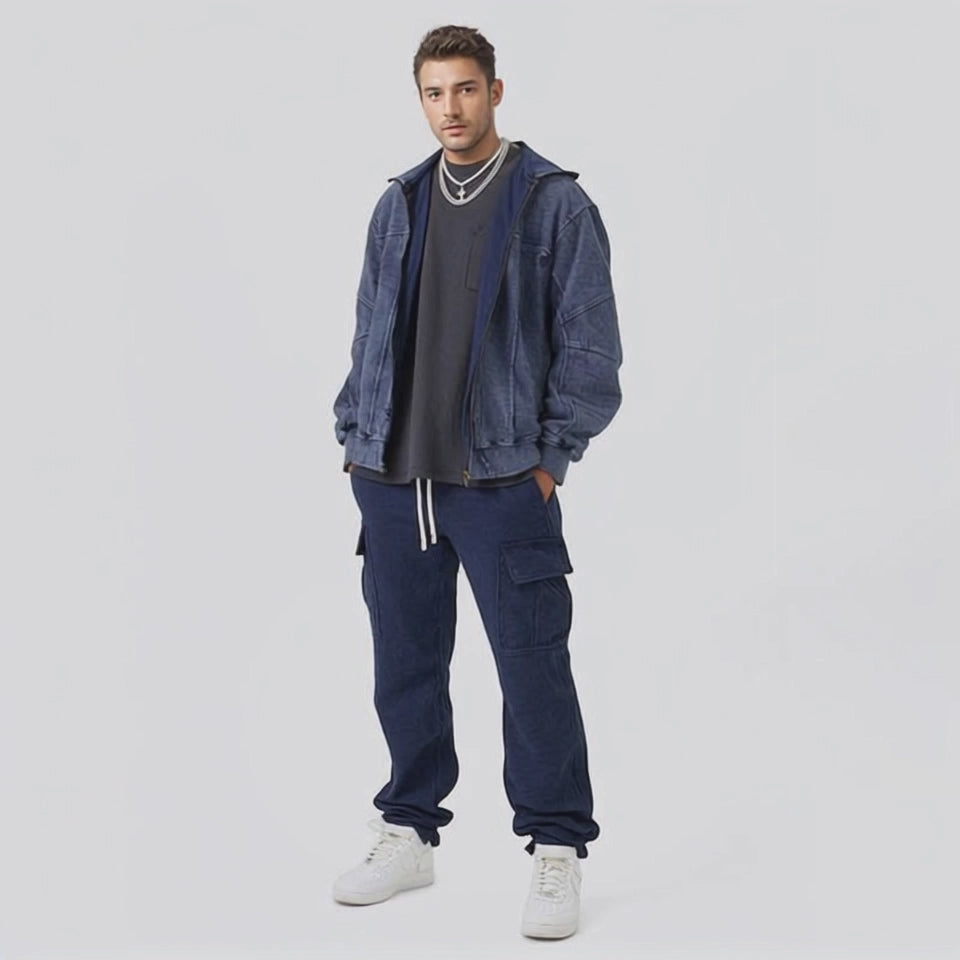 Pure cotton zipper retro sweatshirt heavy acid wash hoodie men's cardigan for men