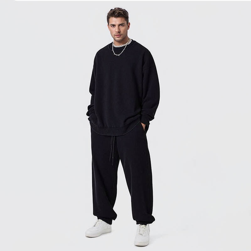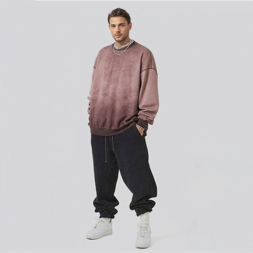 report item Autumn worn looking washed-out vibe round neck sweater men's long-sleeve shirt