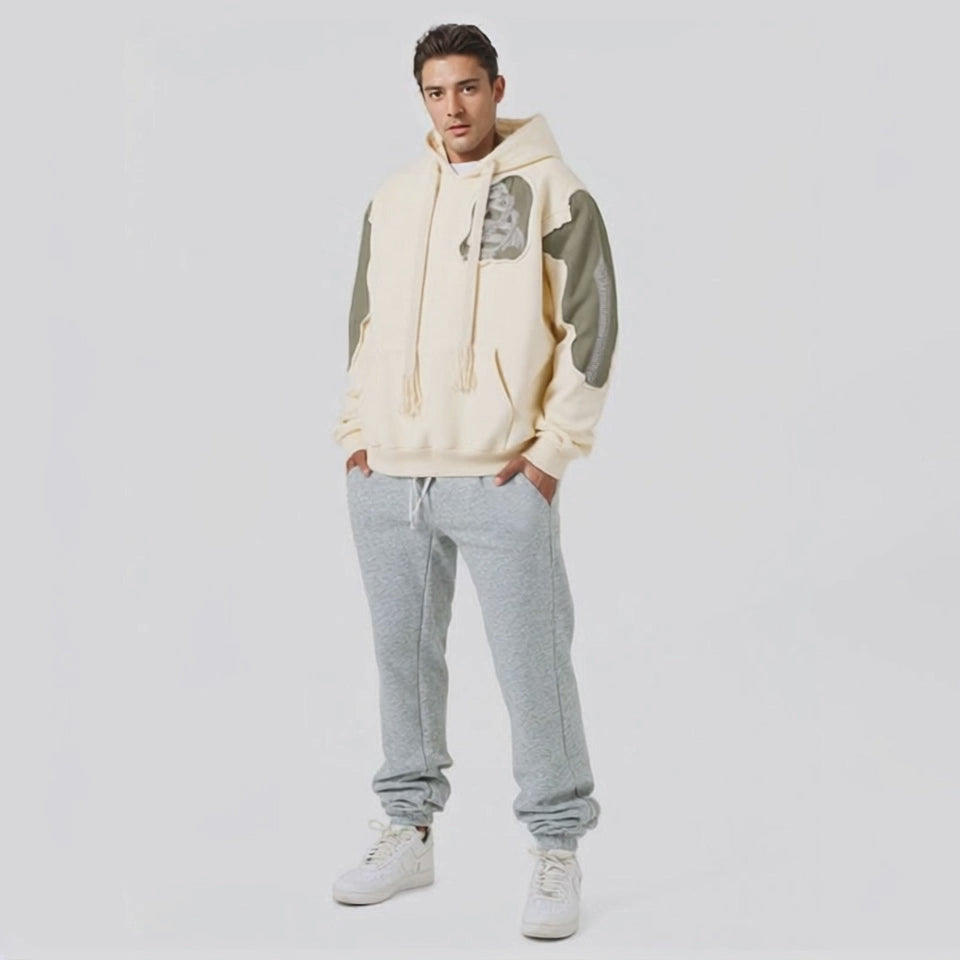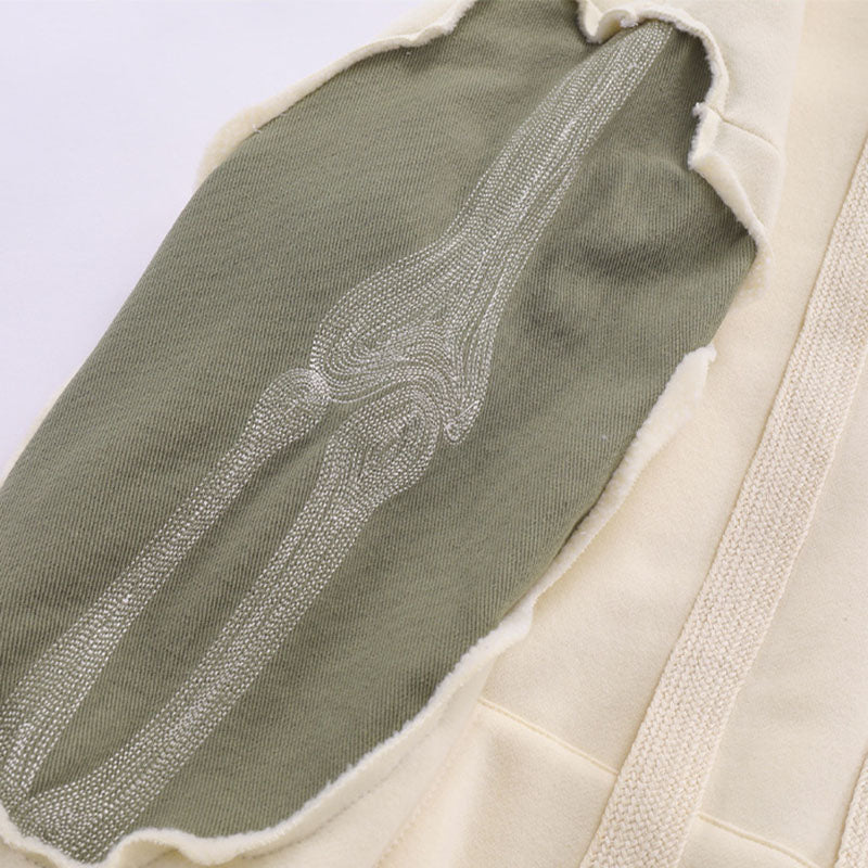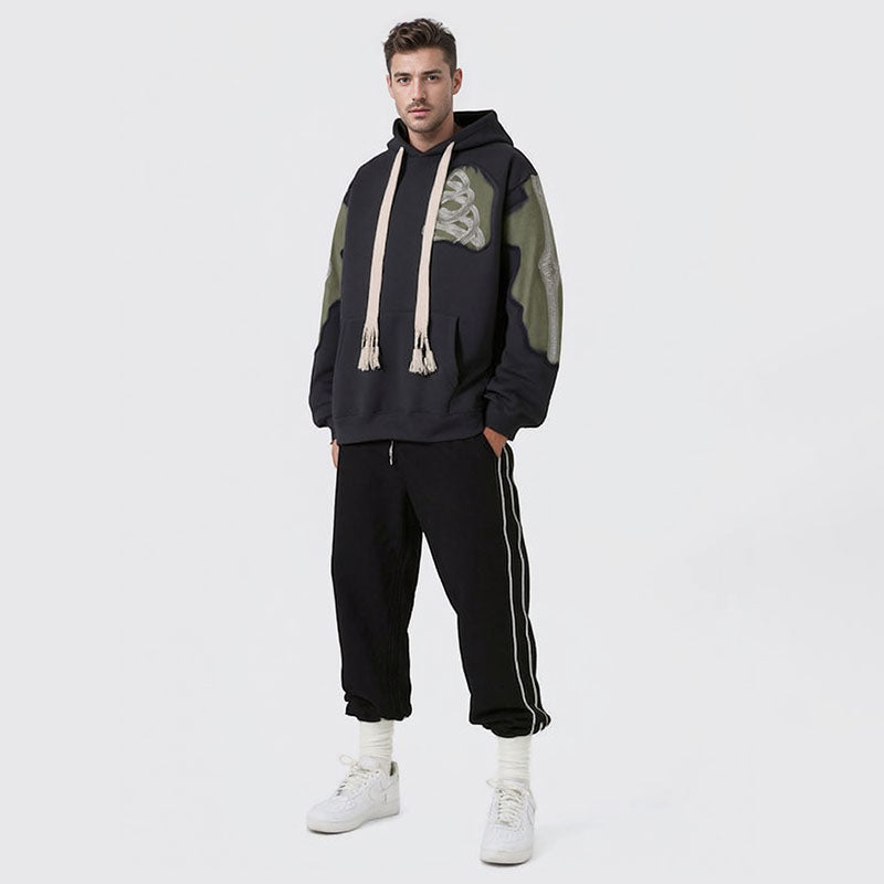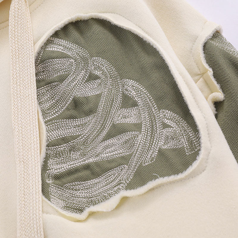 Retro fashion skirt thickened street hole design contrast color stitching plus velvet hooded sweatshirt