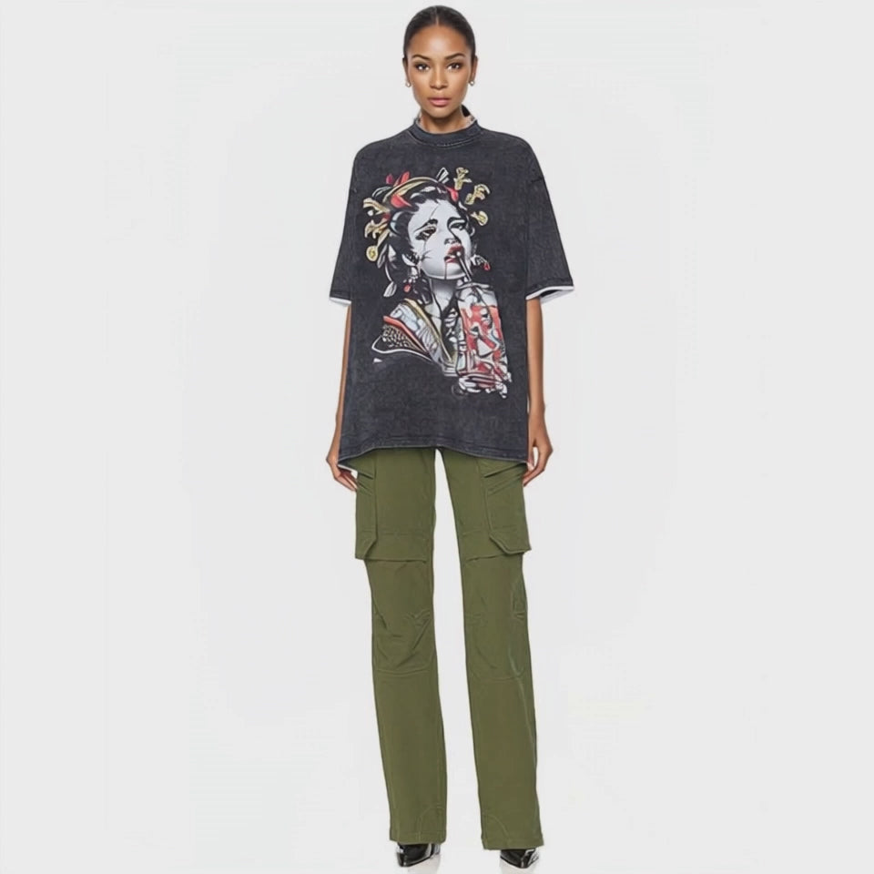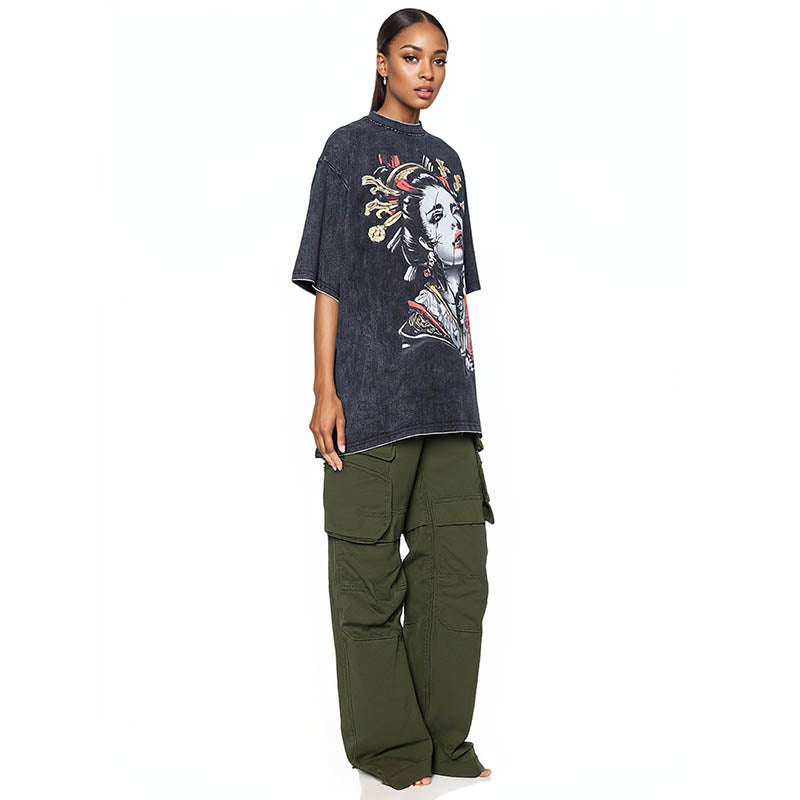 Spoof Ukiyo-e print old short-sleeved T-shirt for men and women hip-hop retro half-sleeved rest sports short-sleeved T-shirt for men and women the same