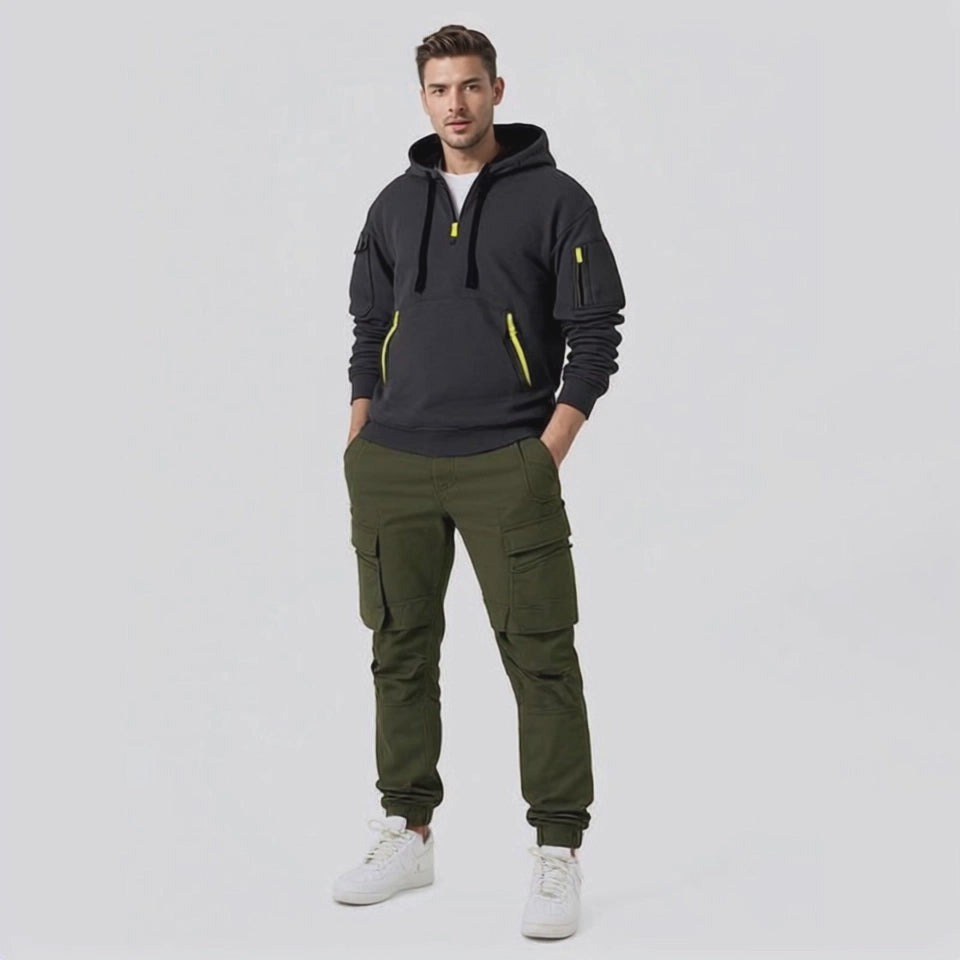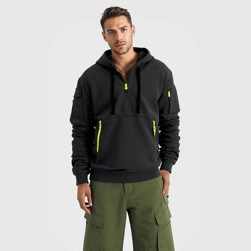 Spring and autumn new men's sweatshirt hoodie zipper multi-pocket pullover sports casual sports hoodie