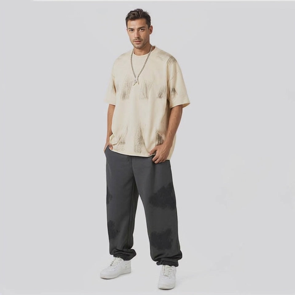Spring and summer new heavy-duty washed and polished short-sleeved T-shirts for men