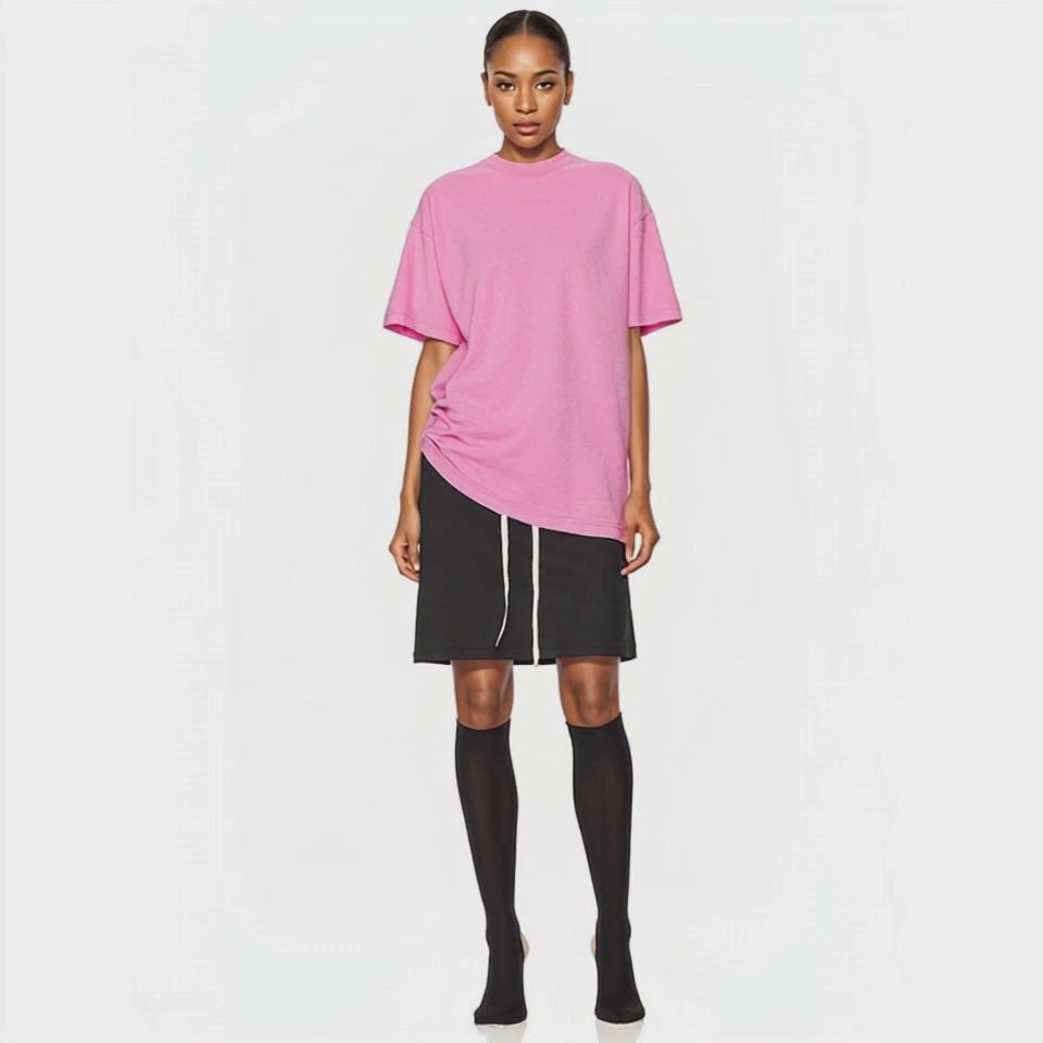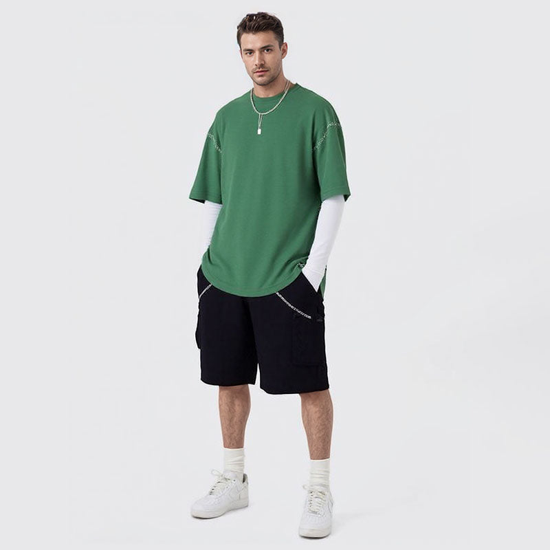 Stir-fried flower heavy washed distressed T-shirt for men and women half-sleeved off-shoulder loose T-shirt