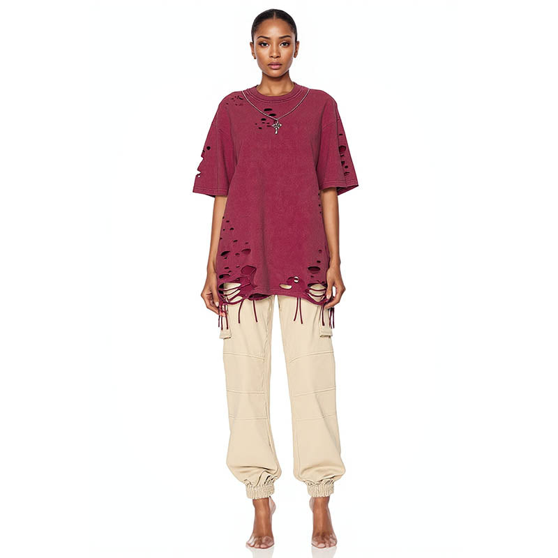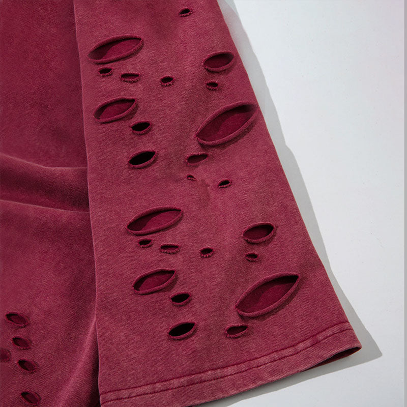 Summer new style retro distressed hole necklace T-shirt loose lazy short-sleeved men's T-shirt