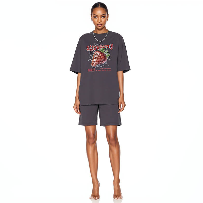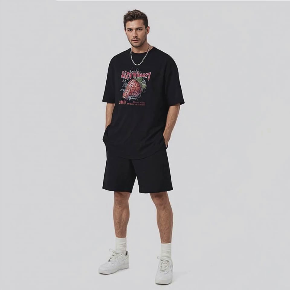 Summer Strawberry Print Solid Color T-Shirt Large Men's Top