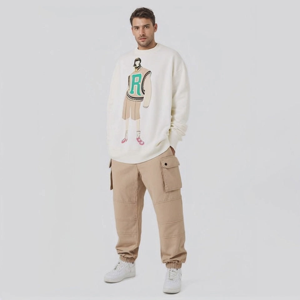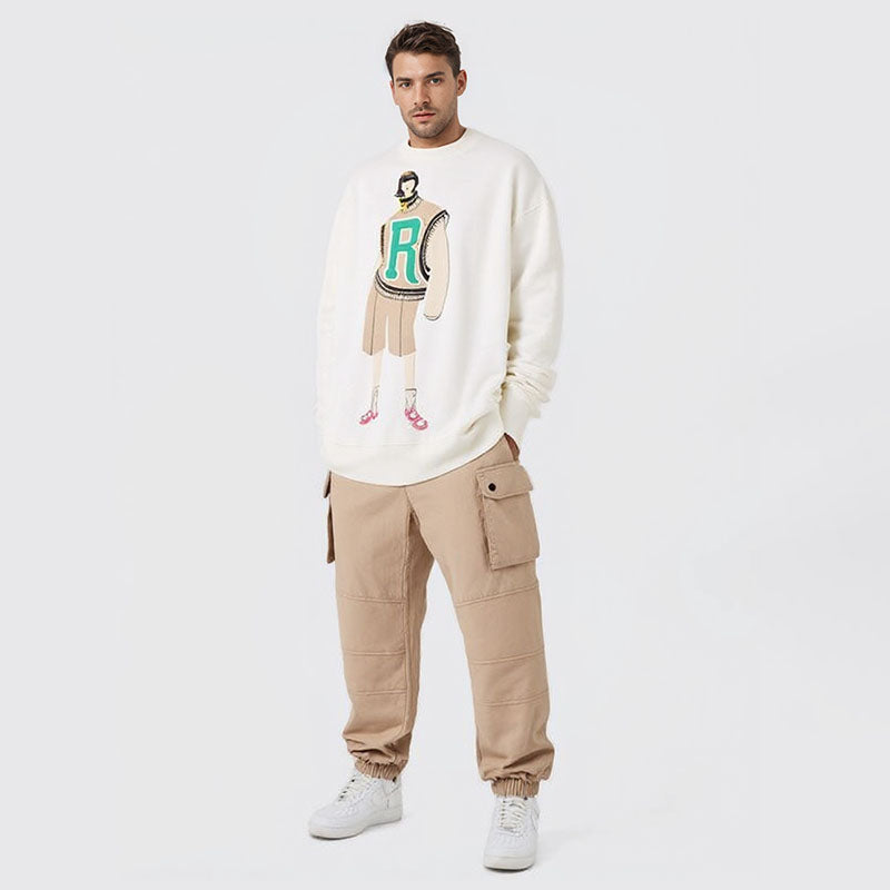 Women's spring patchwork cartoon pattern printed round neck casual fashion brushed sweatshirt